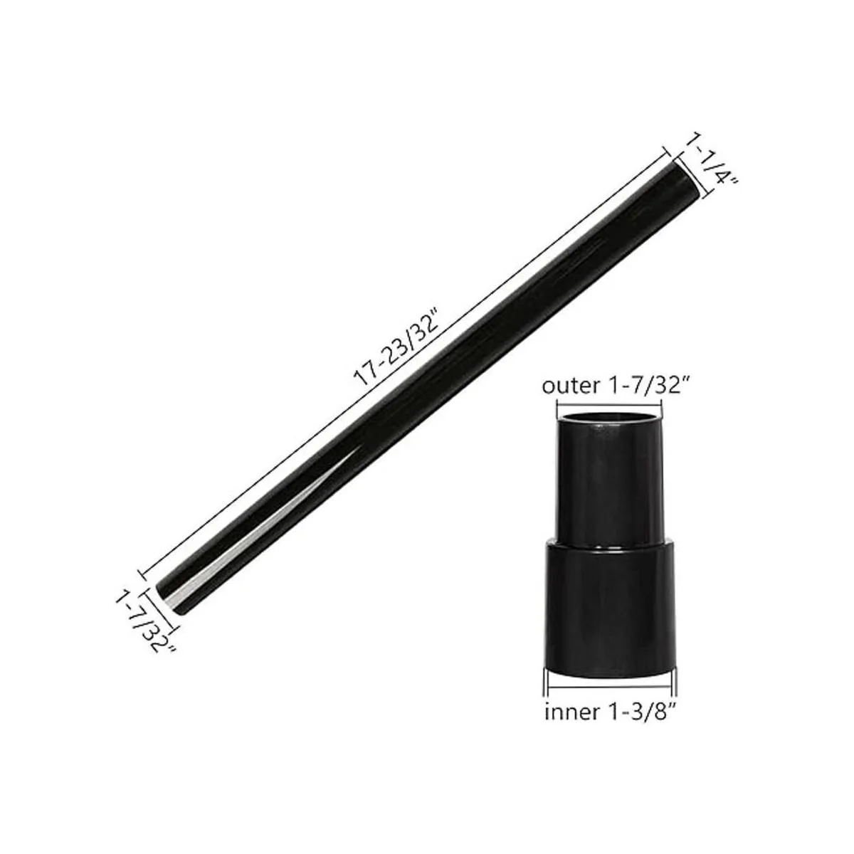 El paquete incluye: 2 tubos de extensión de aspiradora y 1 adaptador de aspiradora, 2 varitas de extensión que se pueden extender a 34 pulgadas. Adaptador de manguera de aspiradora de 13/8 pulgadas a 17/32 pulgadas, permite que la manguera de 13/8 pulgadas acepte todos los accesorios de 11/4 pulgadas para extender la longitud de trabajo o tienes más opciones de cepillos.