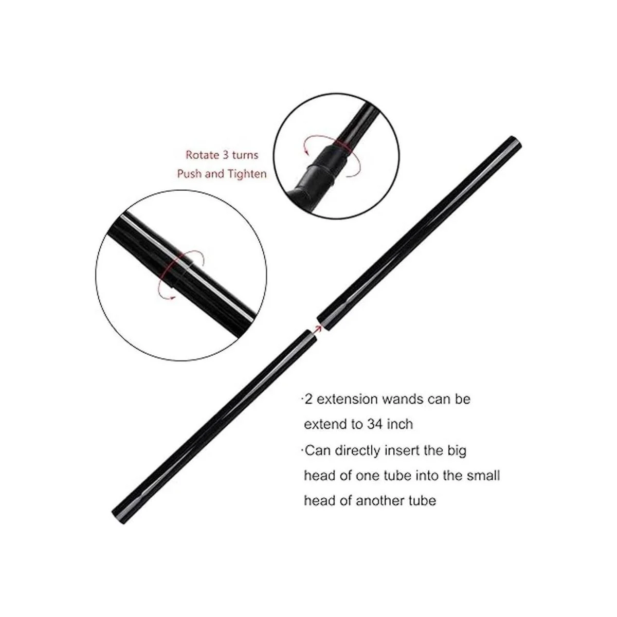 VideoPUP Juego de 3 varillas de extensión de 114 pulgadas, accesorios para aspiradoras de 1.260 in, manguera de vacío de plástico de 34 pulgadas manguera negra, paquete de 3 21