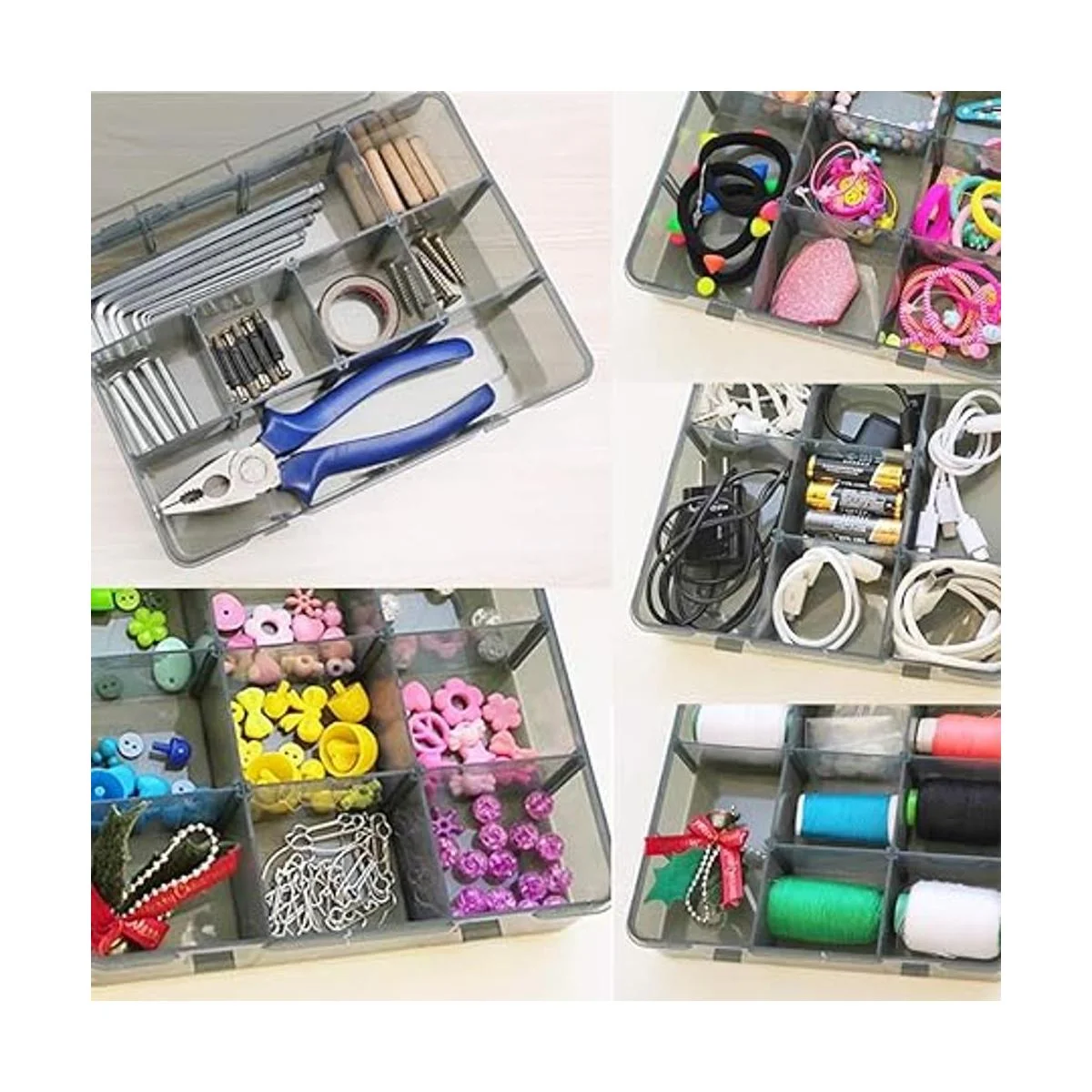 Múltiples usos: organizador de plástico para almacenar joyas, manualidades, rocas, cuentas, cartón, tuercas y pernos, cebos de plástico, aparejos terminales, cuentas, baterías, monedas, caja de colección de rocas para niños, así como para aparejos de pesca y organización de tornillos.