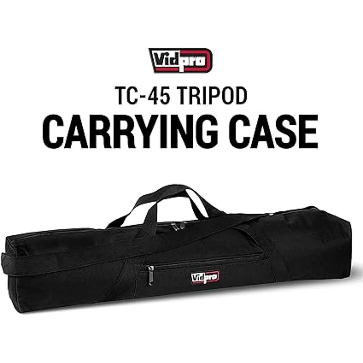 Vidpro TC45 Funda de transporte para trípode, bolsa de nailon resistente con correas de hombro y asas, funda compacta con cierre de cremallera de longitud completa y bolsillo externo para trípode con cabeza de hasta 45 pulgadas