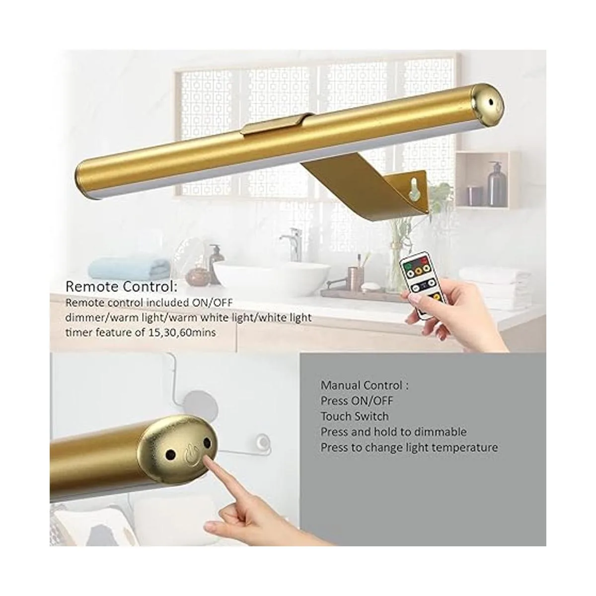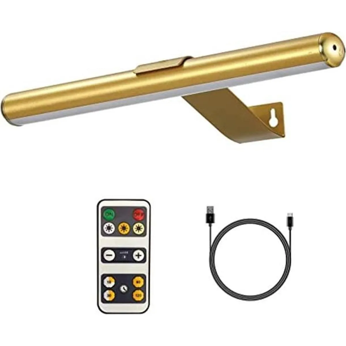 VIGMOJ Wireless Picture Light Battery Operated,Rechargeable Painting Light with Remote Control, Metal Art Light Display Lamp,3 Modes,Dimmable Dartboard Light with Timer for Frame Gallery,300LM, Gold