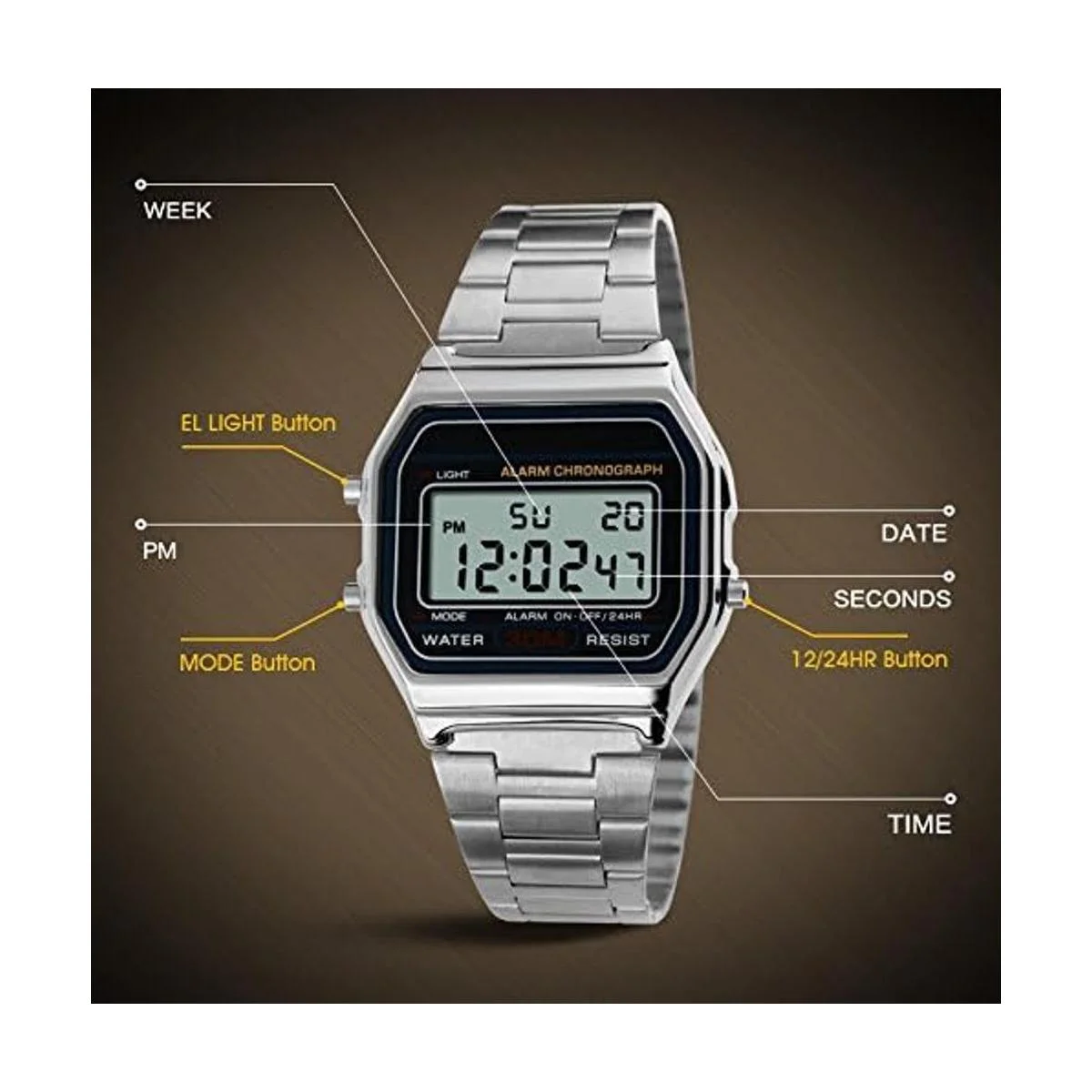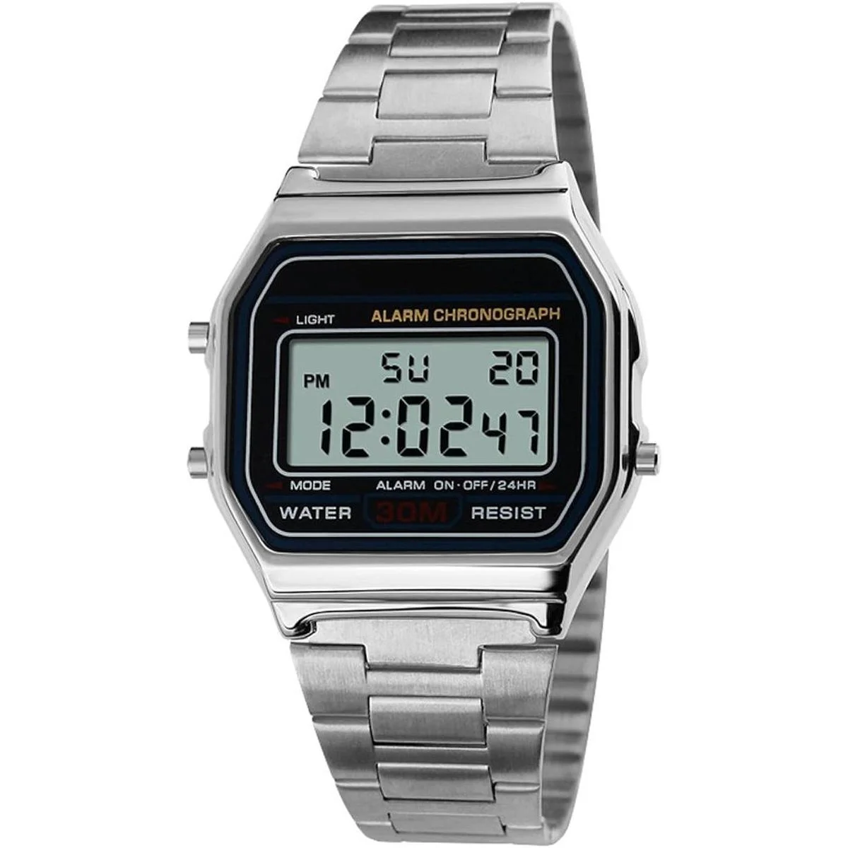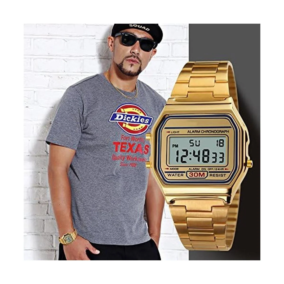 VIGOROSO Reloj casual digital de acero inoxidable con alarma para hombres y mujeres, estilo retro, retro, color dorado