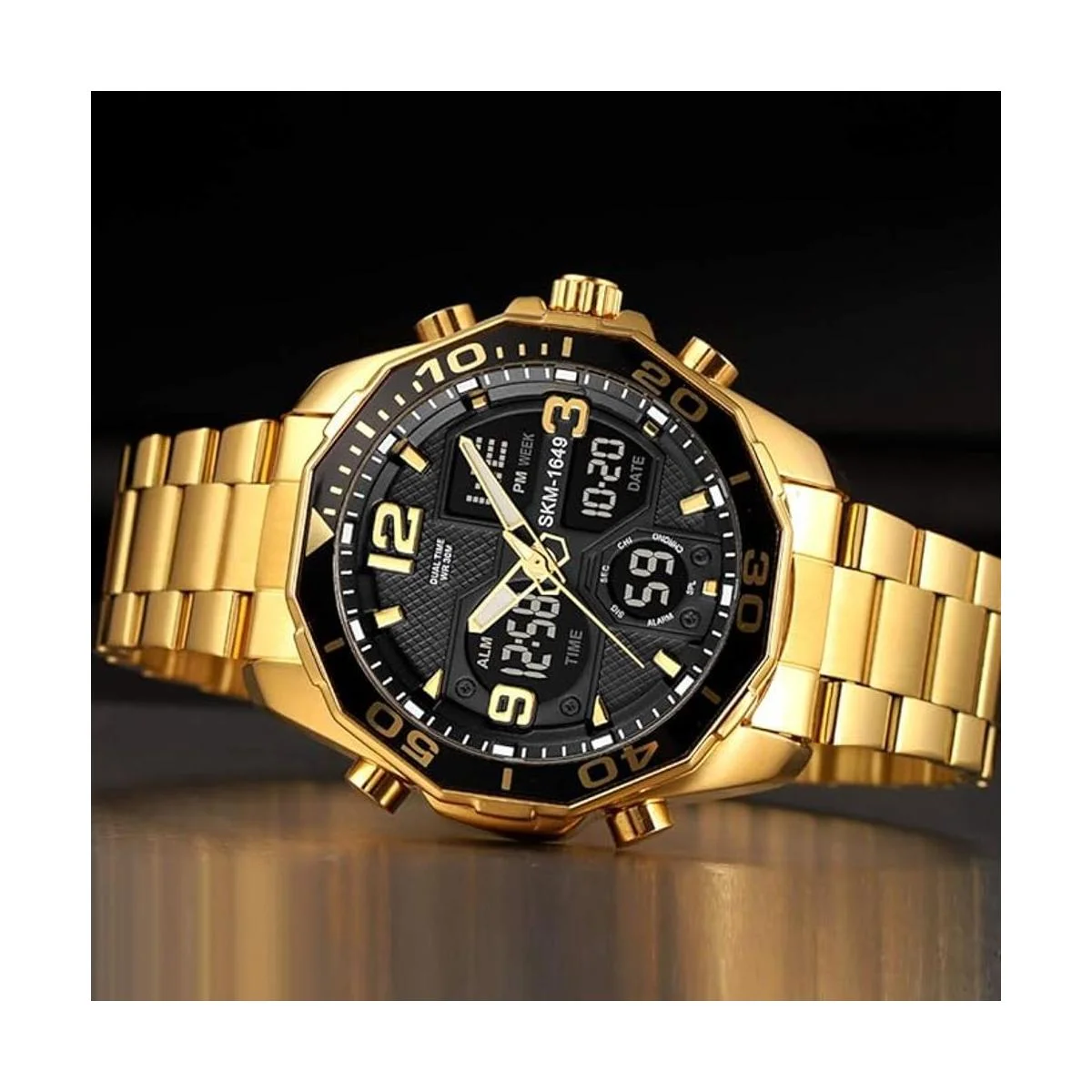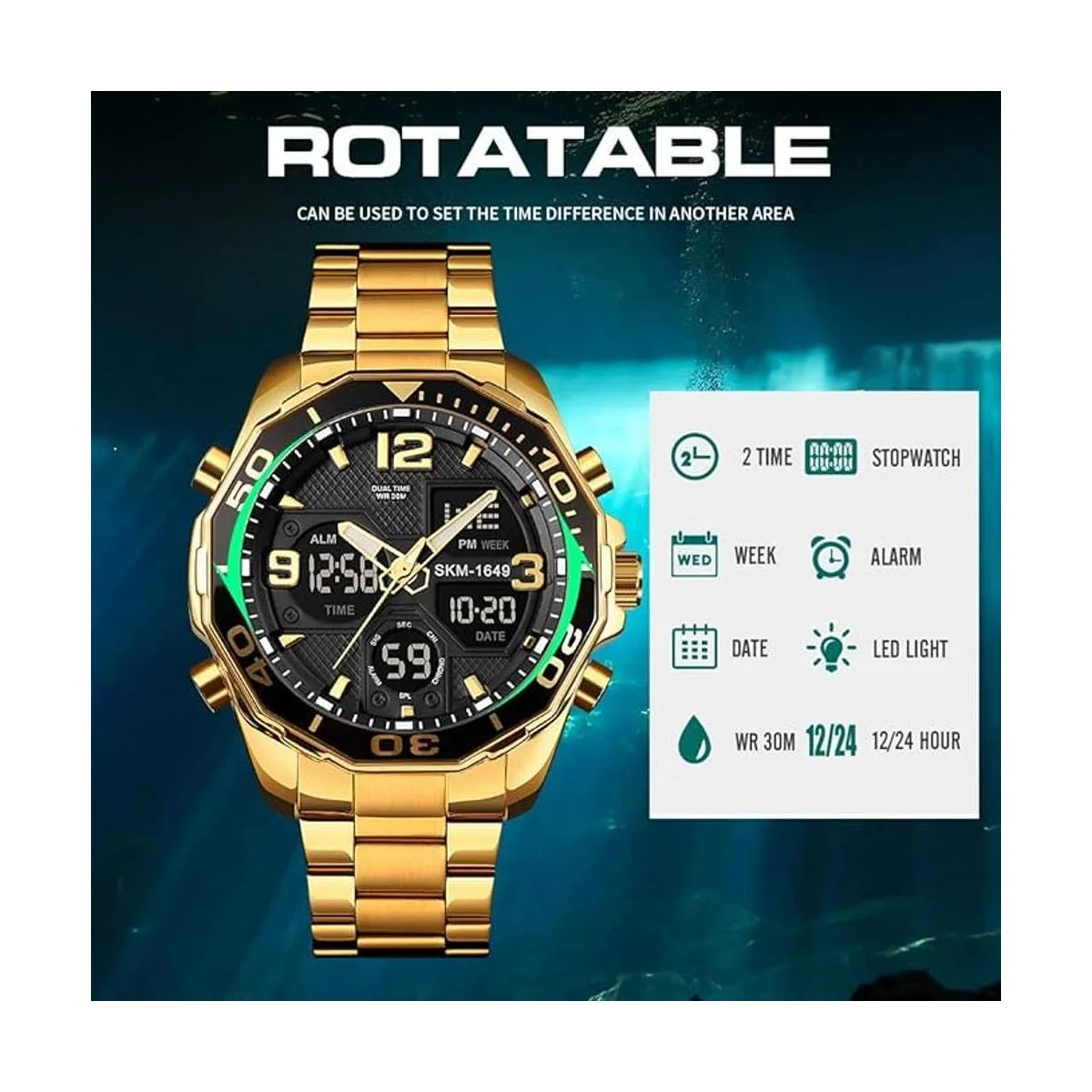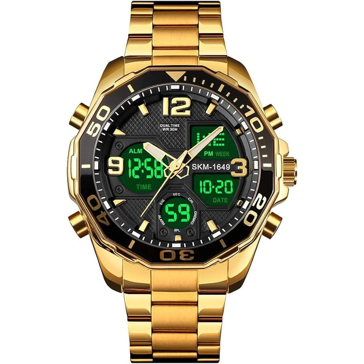 VIGOROSO Reloj de pulsera para hombre, color dorado militar, cronógrafo, digital, analógico, de acero inoxidable, para niños, adolescentes, caballeros, resistente al agua