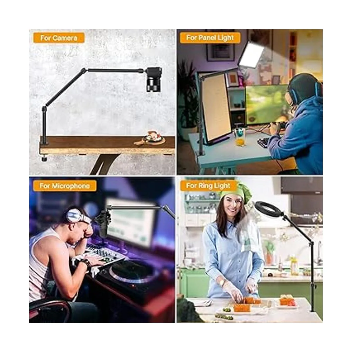 VIJIM LS08 Soporte de escritorio flexible para cámara superior, soporte de cámara web, brazo de brazo de mesa, fotografía, videografía, transmisión en vivo, soporte de abrazadera de mesa