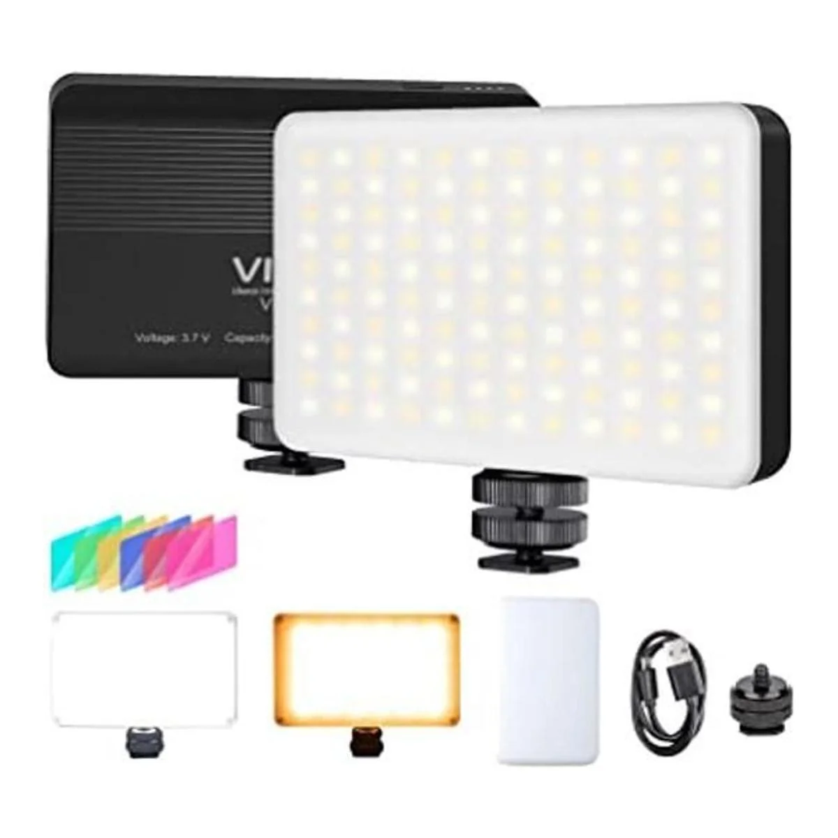 VIJIM VL120 Luz de video LED para cámara, mini luz LED bicolor, iluminación de fotografía portátil con 6 filtros de color, 3100 mAh recargable CRI 95 3200K6500 K, luz de panel LED regulable para cámara réflex digital