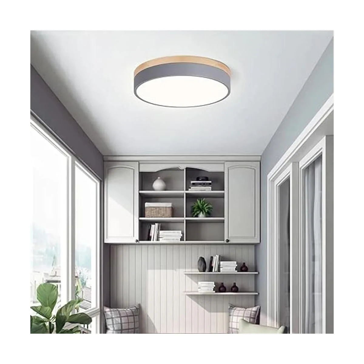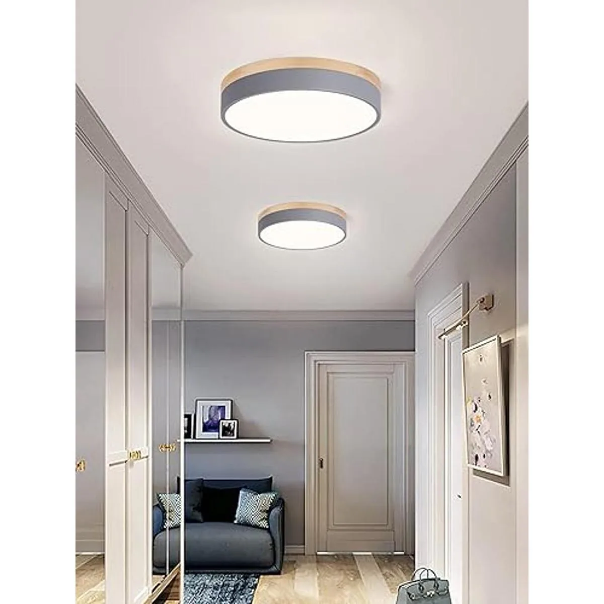 ViKaey Moderna lámpara de techo LED, lámparas de techo empotradas de madera, lámparas de techo circulares cerca del techo para vestíbulo, cocina, entrada, pasillo, lavandería, dormitorio, sala de estar gris, 11.8 pulgadas
