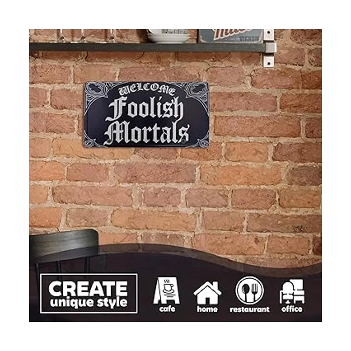 Aplicación de los mortales tontos de bienvenida: Este póster de bienvenida de mortales tontos puede ser perfecto para la decoración del hogar para oficina, sala de estar, dormitorio, baño, también podemos utilizar el letrero de arte de cocina retro para habitación familiar, aula, apartamento, decoración de comedor, póster gótico de cocina.