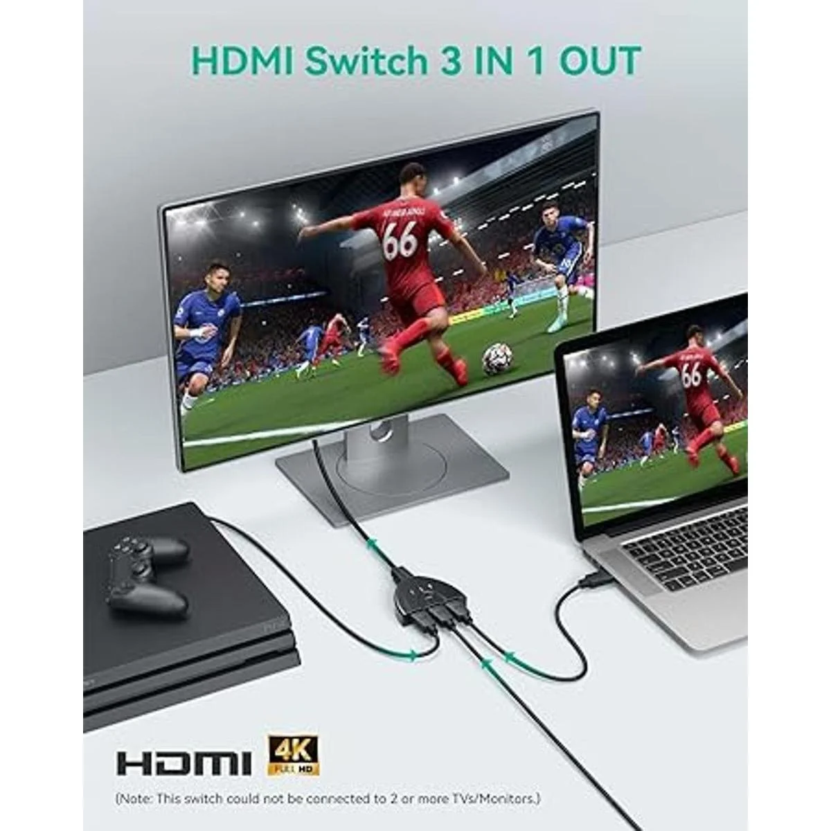 VILCOME Interruptor HDMI 4K, interruptor HDMI de 3 puertos 3 x 1 HDMI divisor Hub 3 en 1 salida con cable coleta compatible con 4K 3D HD 1080P para Xbox PS4 Roku HDTV
