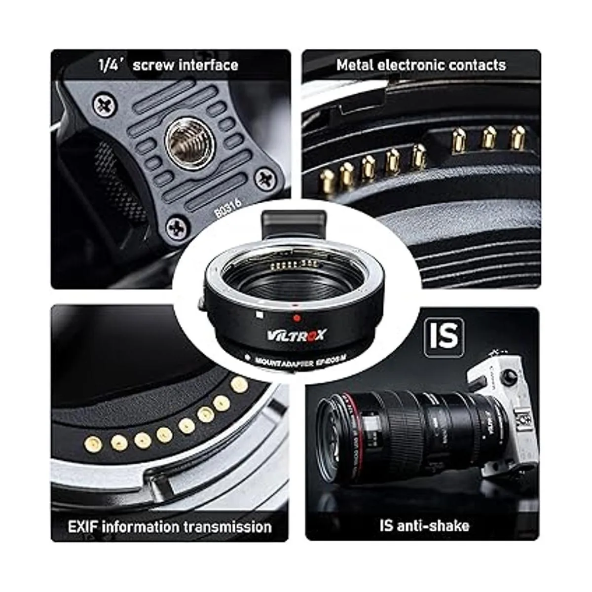 VILTROX Adaptador de enfoque automático de montaje de lente EFEOS M, compatible con lente Canon EFEFS a Canon EOS M montaje EFM Cuerpo de cámara sin espejo EOS M100 M50 M3 M10 M6 M5