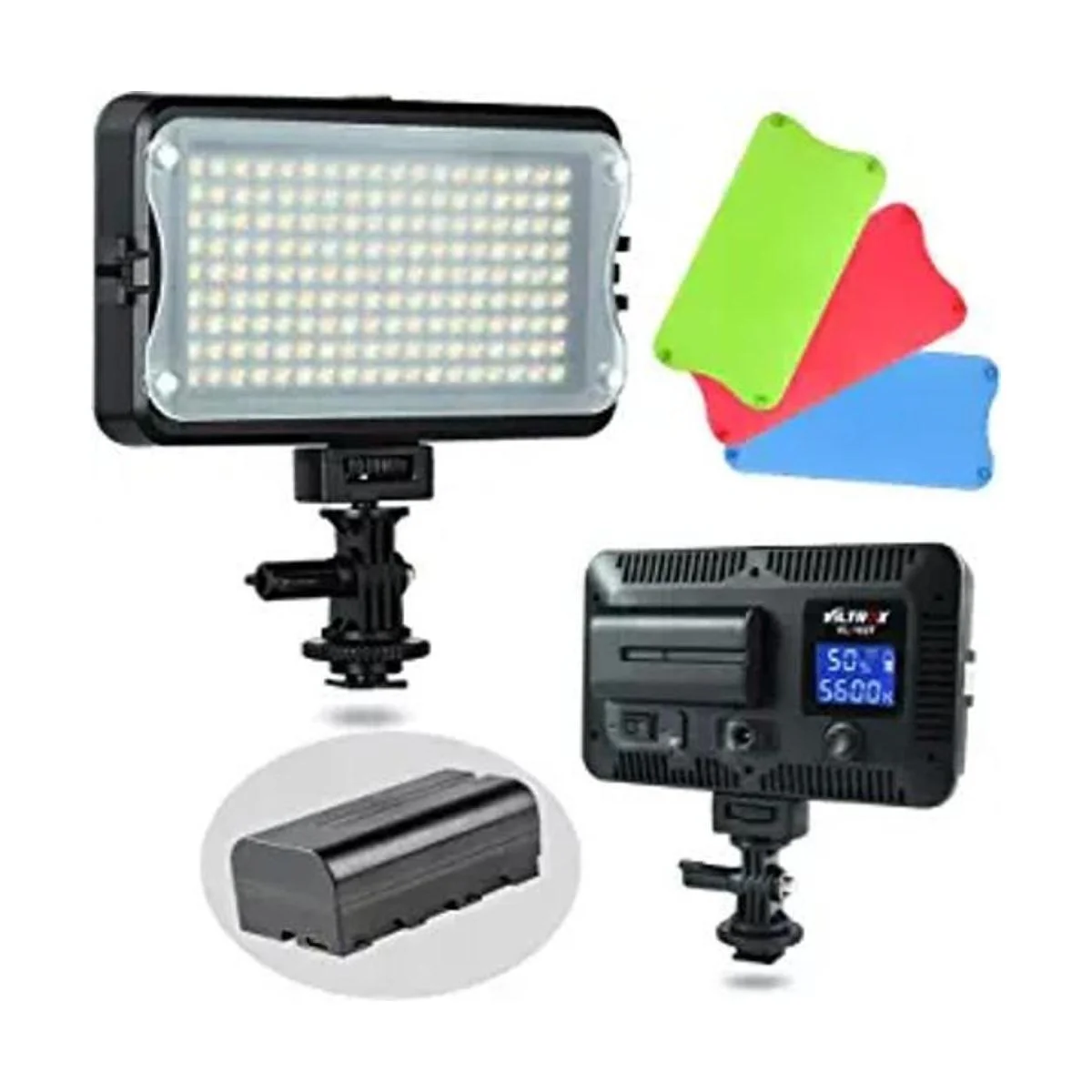 VILTROX VL162T CRI95 Luz de video LED, portátil en la cámara, panel de luz de fotos regulable para cámara réflex digital con batería, alto brillo, 3300K5600K bicolor, filtro blanco y pantalla LCD