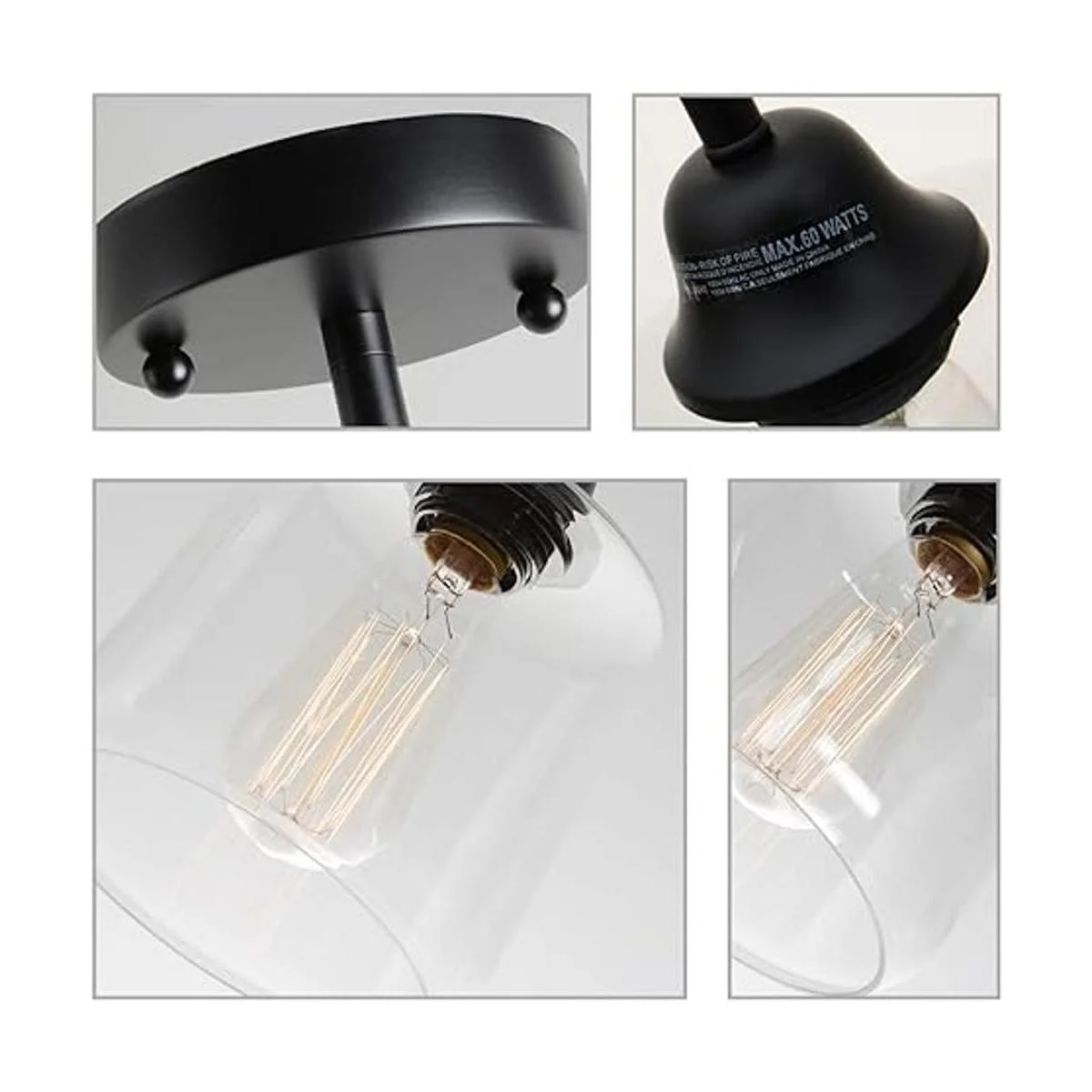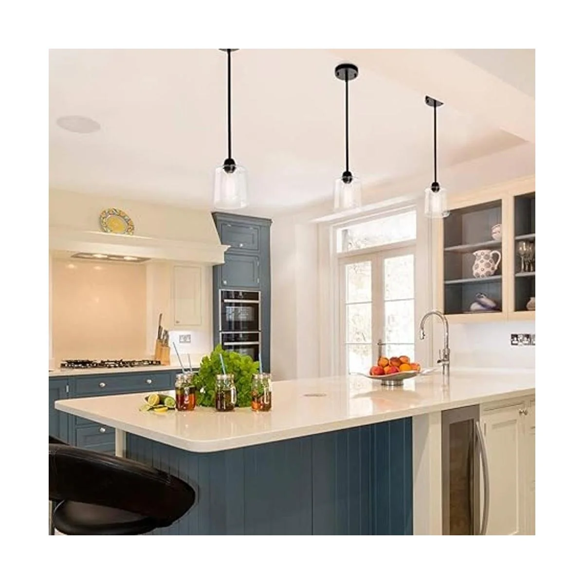 Diseño: lámpara colgante individual con marco de metal y cristal transparente, decoración única y perfecta para casa de campo o moderna. Las pantallas de cristal de la lámpara de techo colgante crean un maravilloso brillo para iluminar tu espacio con estilo.