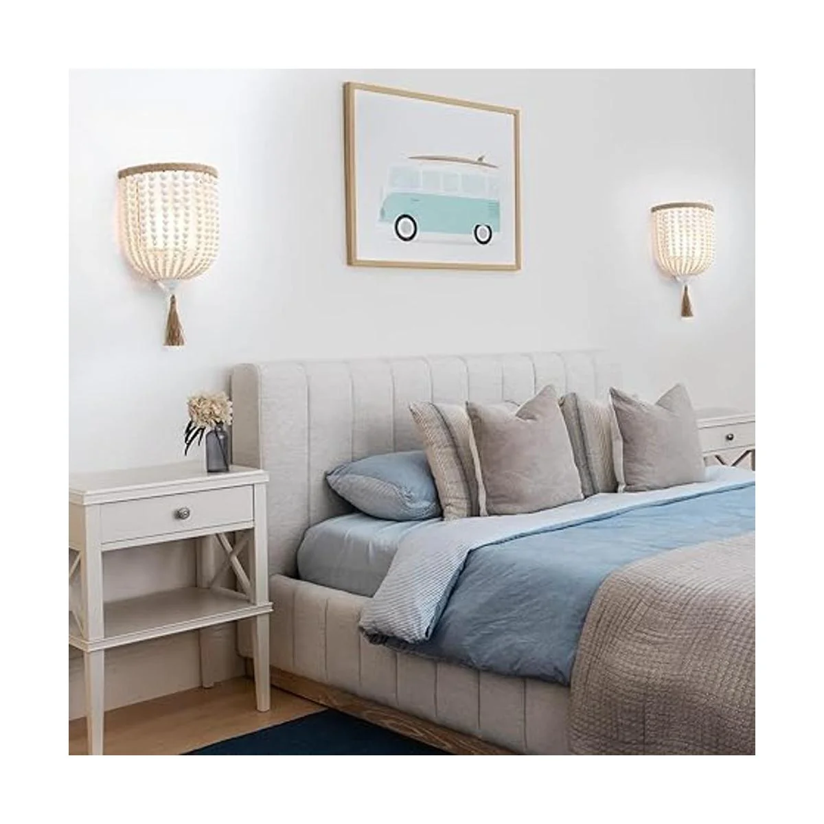 VILUXY Lámpara de pared bohemia con cuentas de madera, estilo antiguo, rústico, para dormitorio, pasillo, entrada, passway, baño, tocador, paquete de 2 unidades