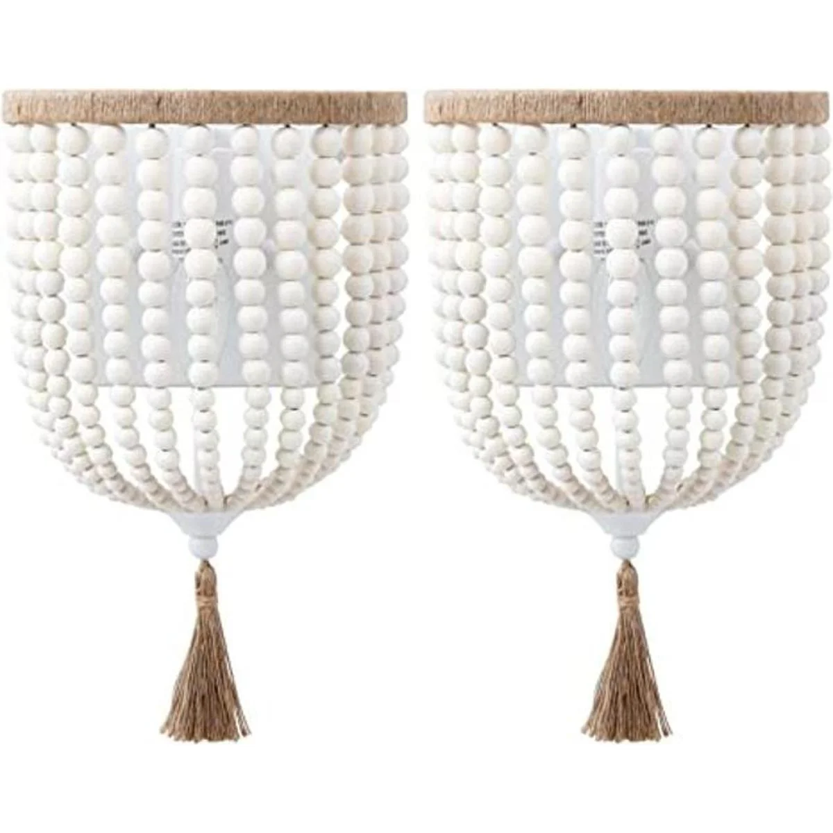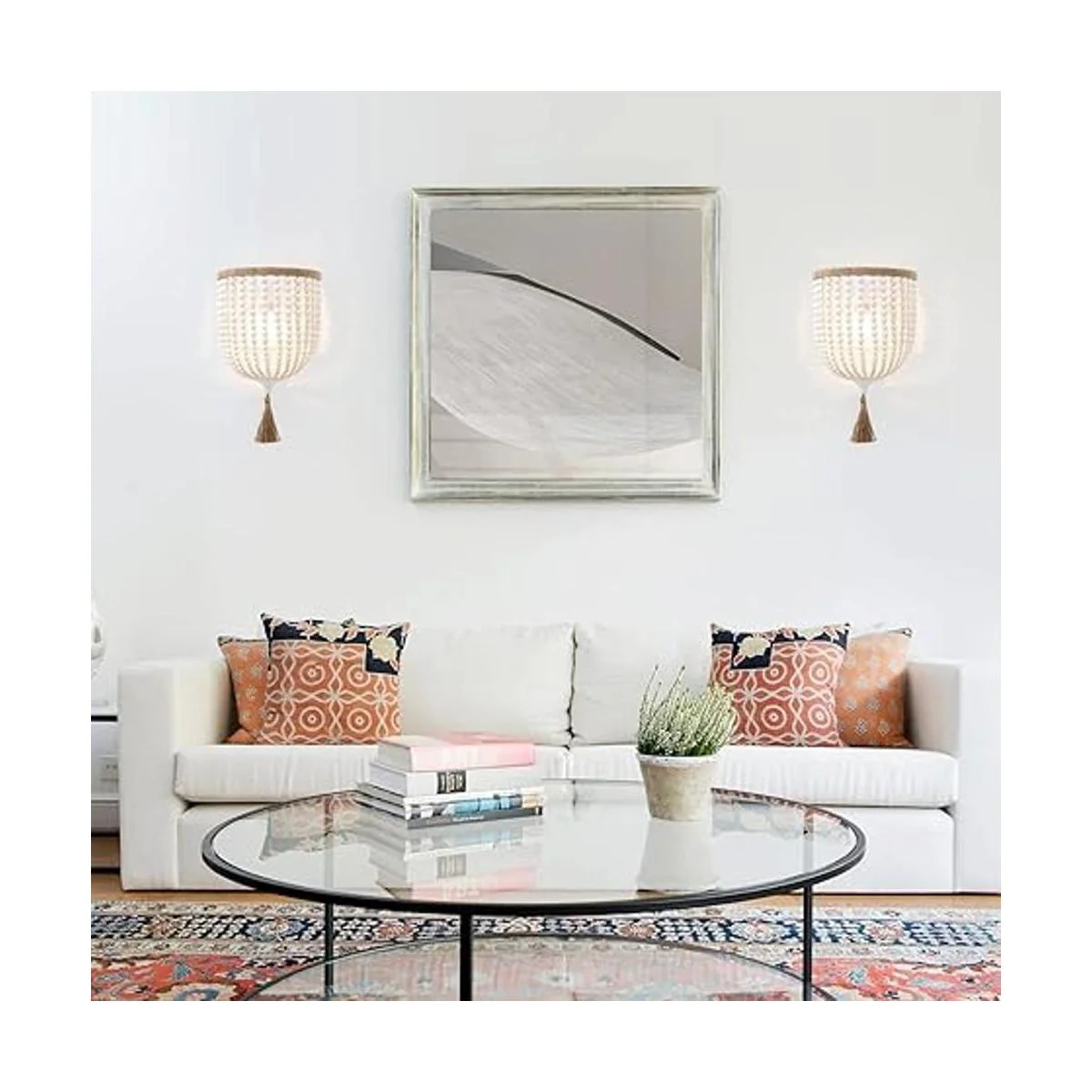Diseño: estos apliques de pared decorados con elementos clásicos de estilo bohemio están hechos de cuentas de madera blanca maciza y nudo de cuerda de mano, creando un aspecto llamativo que le da un toque bohemio a cualquier área.