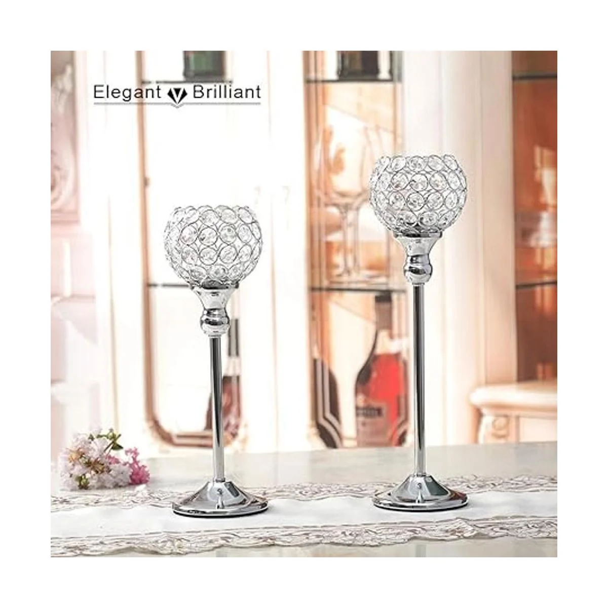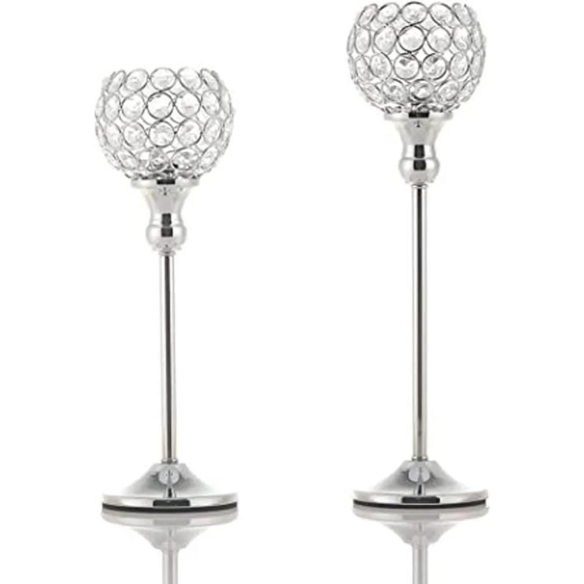 VINCIGANT Juego de 2 portavelas votivas de cristal plateado para centros de mesa, mesa de comedor de boda, soporte de vela de tealight, regalo de inauguración de la casa