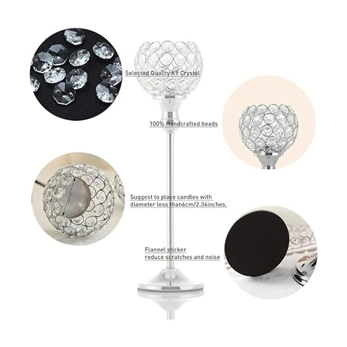 Combina con todo: se adapta mejor a velas electrónicas sin llama o velas de té, las luces reflejan el brillo de los cristales. También se puede combinar con flores, será una bonita decoración de centro de mesa para Acción de Gracias, Año Nuevo, bodas, fiestas, decoración de vacaciones u otros eventos especiales.