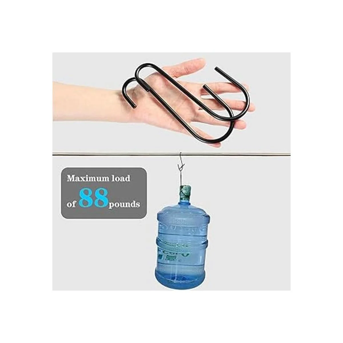 Gancho fuerte para colgar: gancho en S hecho de metal de alta calidad, revestimiento de vinilo negro antioxidante, grosor del gancho resistente es de 0.22 pulgadas, lo suficientemente fuerte para colgar la mayoría de artículos pesados, máximo hasta 88 libras.