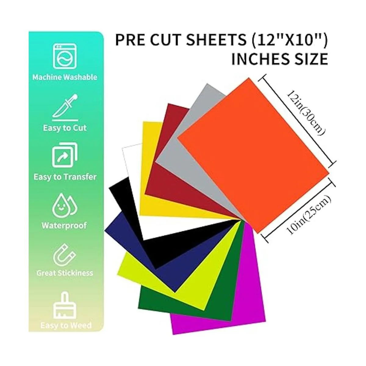 Embalaje: el paquete tiene 10 hojas de vinilo de transferencia de calor, y el tamaño es de 10 x 12 pulgadas. No dudes en ponerte en contacto con nosotros para cualquier insatisfacción.