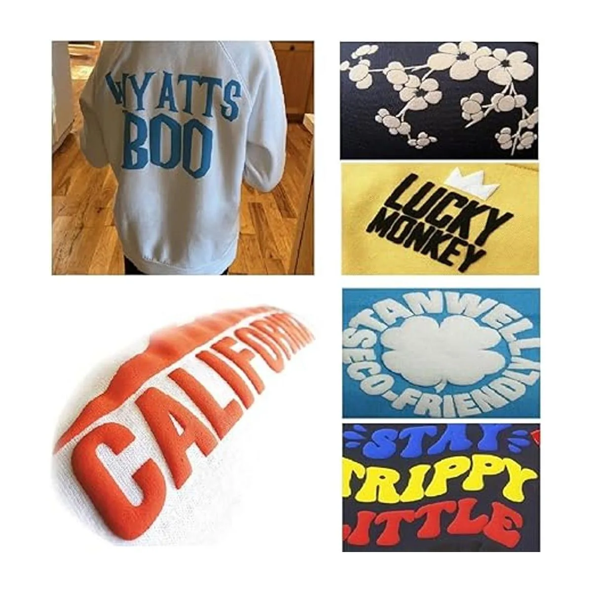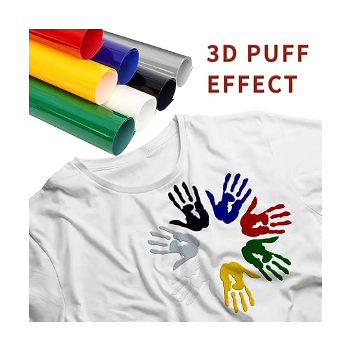 Múltiples usos: este paquete de vinilo de transferencia de calor 3D es adecuado para todo tipo de tejidos, como algodón, lino, poliéster, elastano, viscosa, rayón y mezclas de algodón/poliéster, ampliamente utilizado para diseñar en camisetas, sudaderas, calcetines, delantales y máscaras y otras prendas. Mejor efecto Puff en materiales suaves, no apto para materiales duros como jeans.