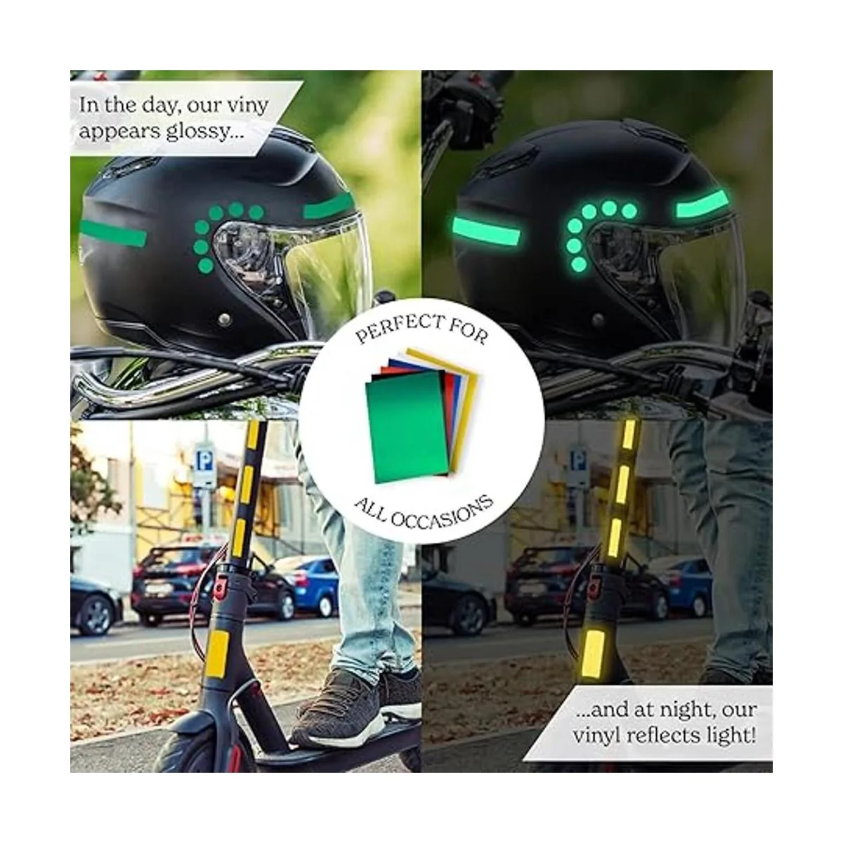 Selección de colores: nuestra cinta reflectante permanente viene en una variedad de colores para que puedas mantenerte seguro mientras te mantienes de buen gusto. Elige entre vinilo reflectante en negro, rojo, azul, verde, amarillo o blanco.