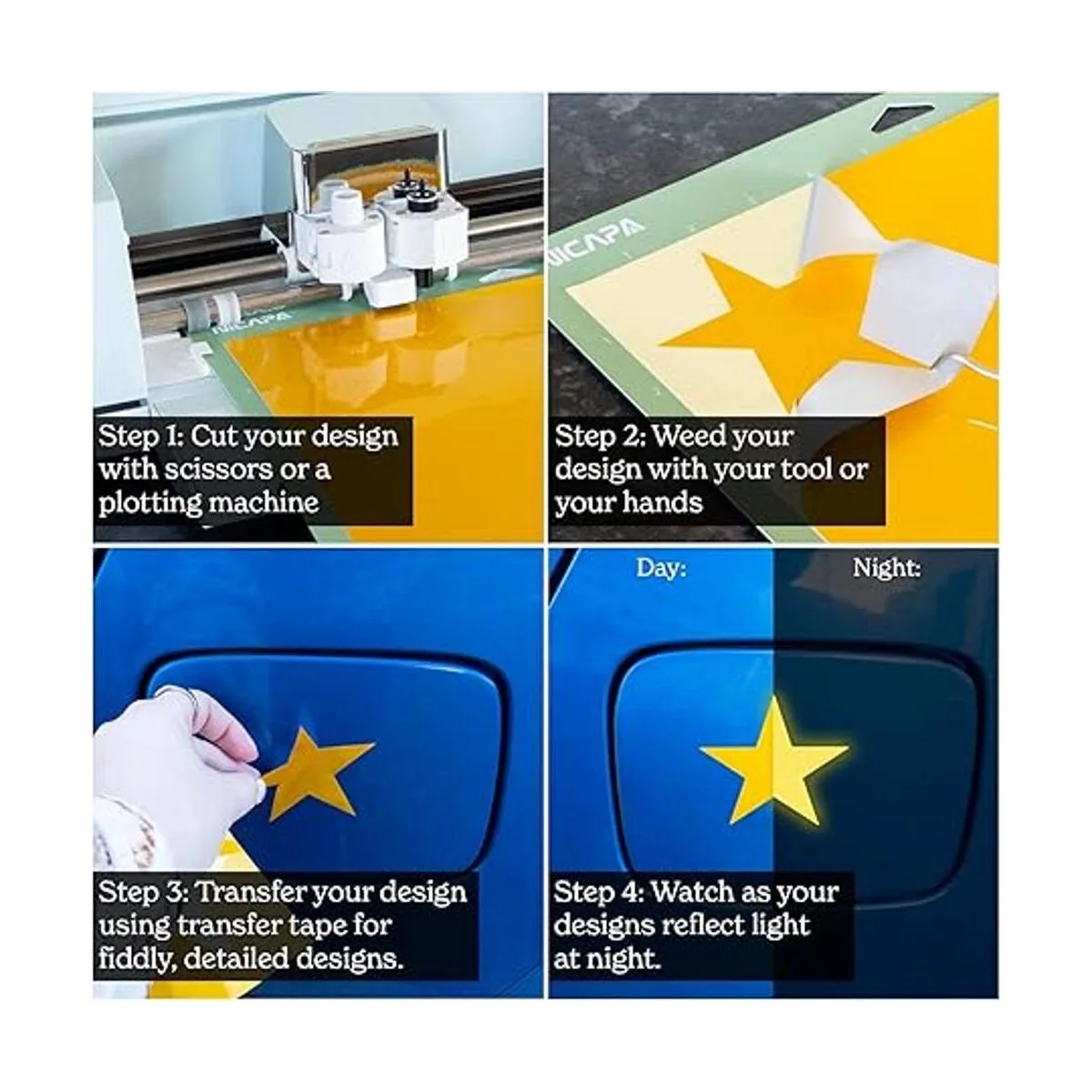 Duradero y de larga duración: con su fuerte adhesivo y resistencia al agua, nuestro vinilo reflector funciona en todos los entornos. Es la mejor opción para letras de vinilo reflectantes a través de Cricut Joy o Explore y Silhouette.
