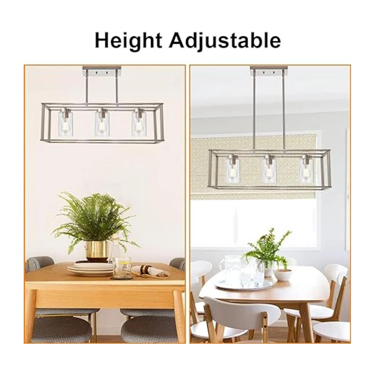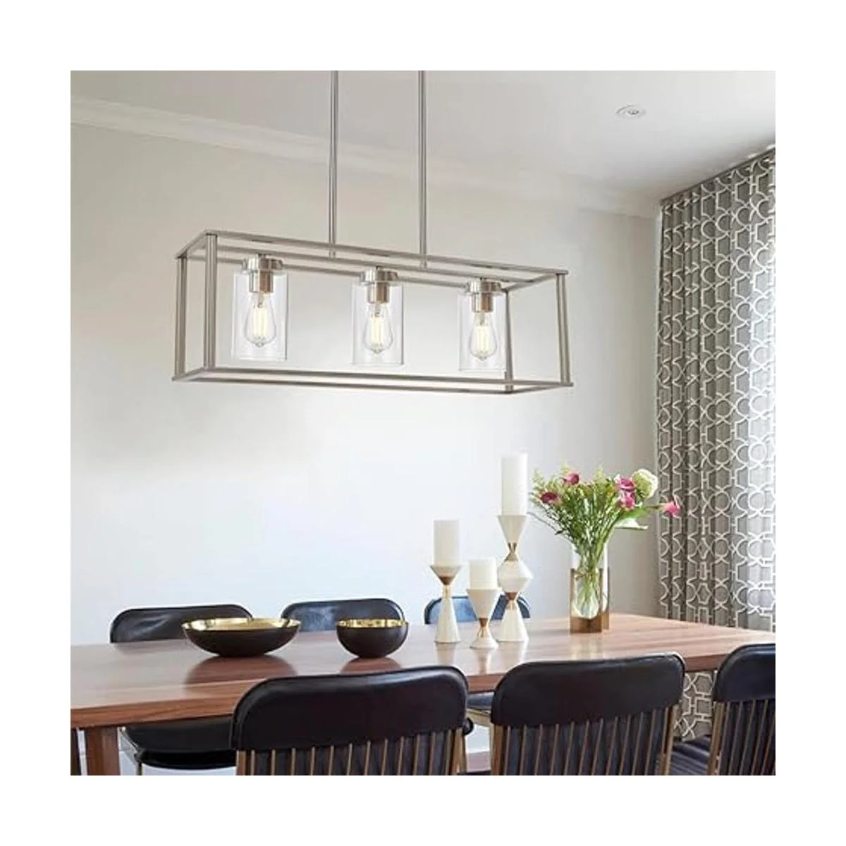 VINLUZ 3 candelabros lineales de luz de níquel cepillado con pantalla de vidrio transparente, moderno colgante de isla de cocina, lámpara de techo colgante para sala de estar, bar