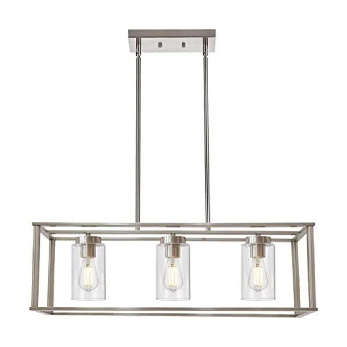 Diseño contemporáneo: esta sencilla iluminación colgante lineal para isla con pantalla de cristal transparente, diseño único para iluminar el corazón de tu cocina, comedor o lugares de estilo granja.