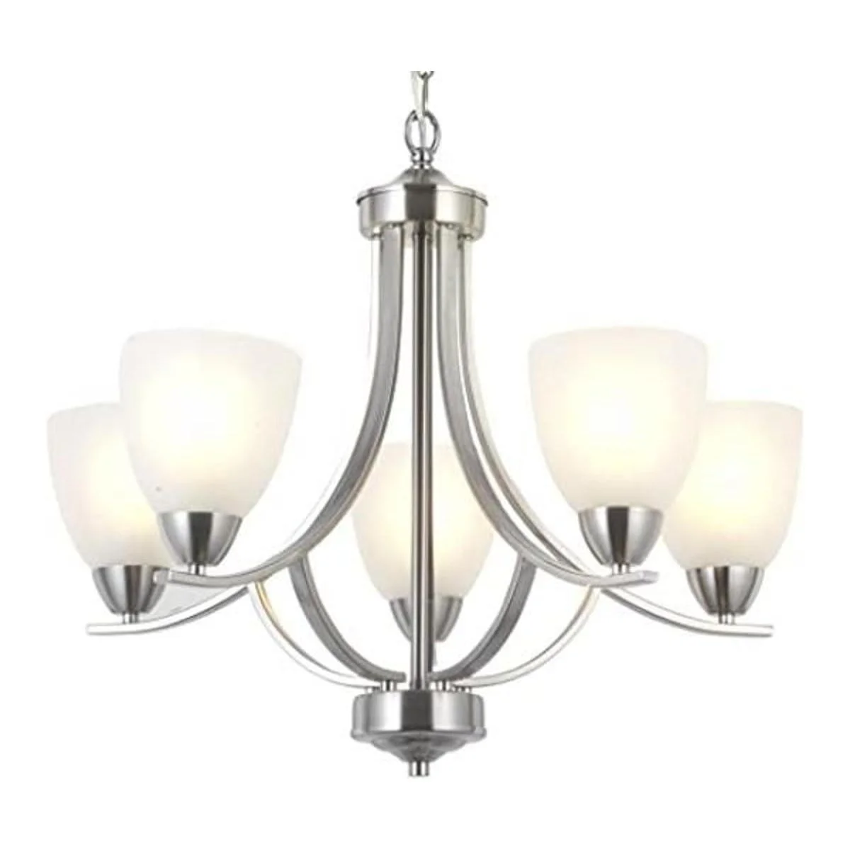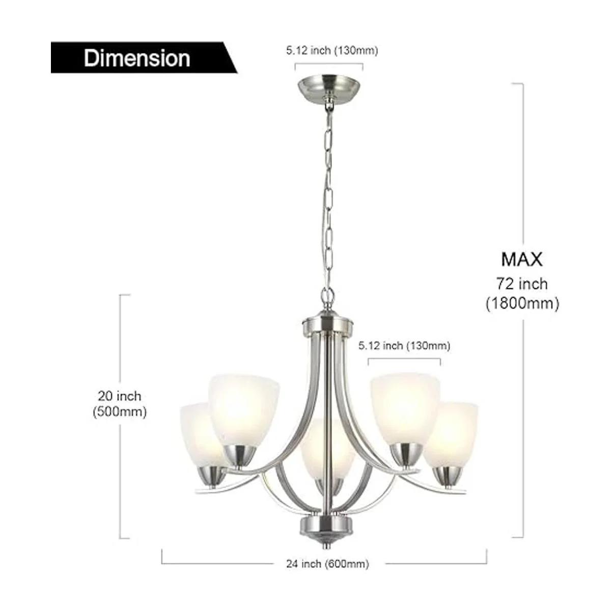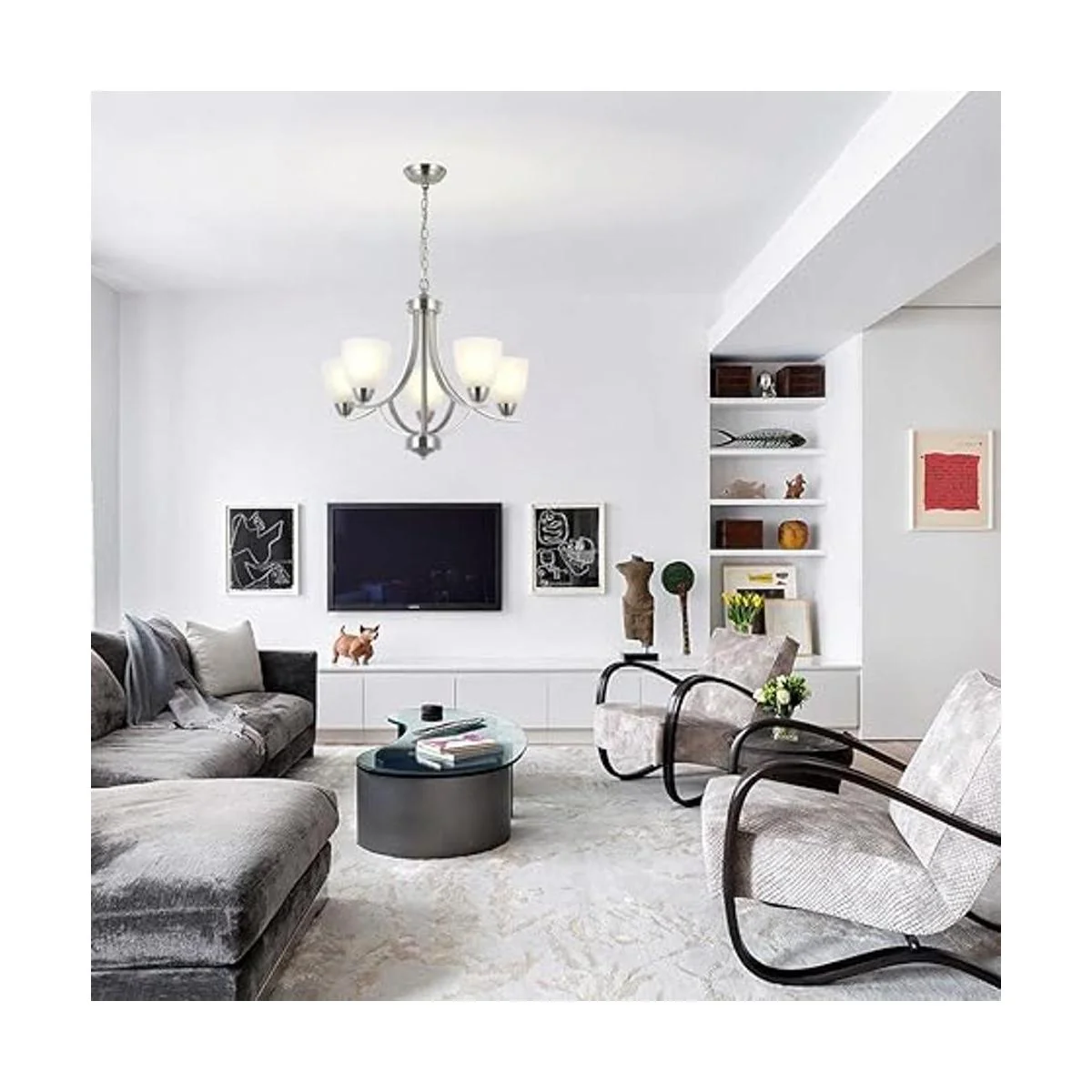 VINLUZ 5 candelabros contemporáneos de níquel cepillado, lámparas modernas para colgar en el techo, iluminación colgante industrial para vestíbulo, dormitorio, comedor, baño