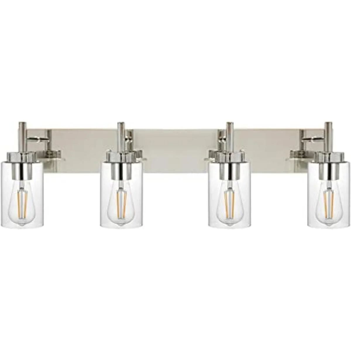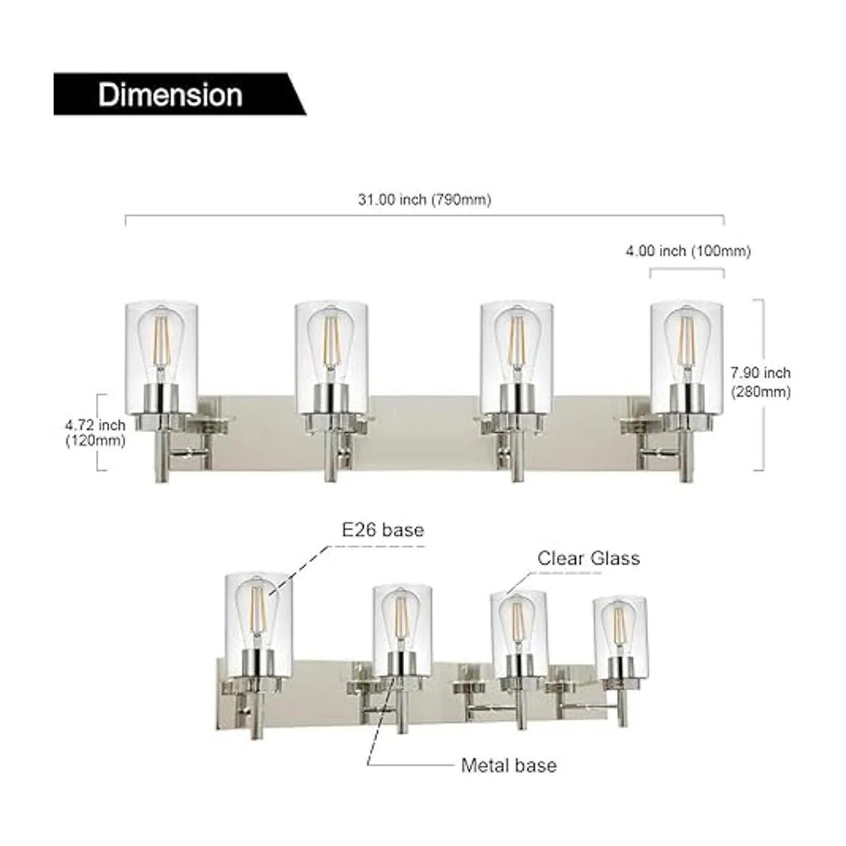 VINLUZ Moderna iluminación de baño con pantalla de vidrio transparente, 4 luces, lámparas de tocador con acabado cromado, apliques de pared industriales para dormitorio, pasillo patente núm. US D958,438 S