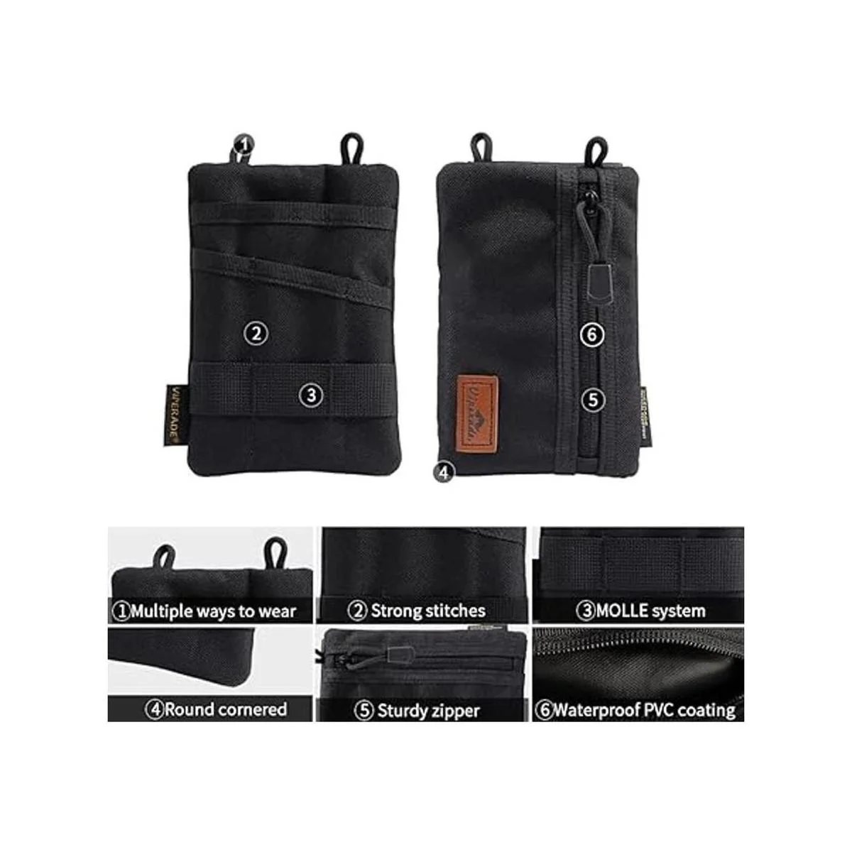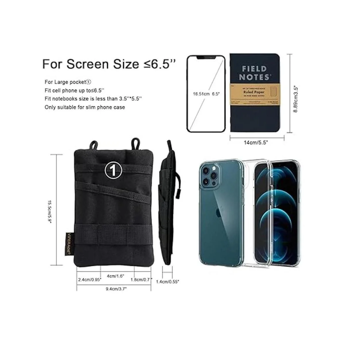 Funda de bolsillo para herramientas: el diseño de bolsillo oblicuo puede almacenar al menos 3 herramientas, por ejemplo: mini linterna, cuchillo de bolsillo y bolígrafo táctico. El bolsillo grande en la parte superior generalmente tiene capacidad para un cuaderno de 3.5 pulgadas y 5.5 pulgadas o tu teléfono celular tamaño de pantalla 6.5 pulgadas. El diseño de enchufe Molle puede contener herramientas con clips de bolsillo, lo que ahorra mucho espacio. Hay un bolsillo con cremallera en la parte posterior, que puede almacenar monedas, tarjetas o documentos pequeños. Tu transporte diario todo en uno.
