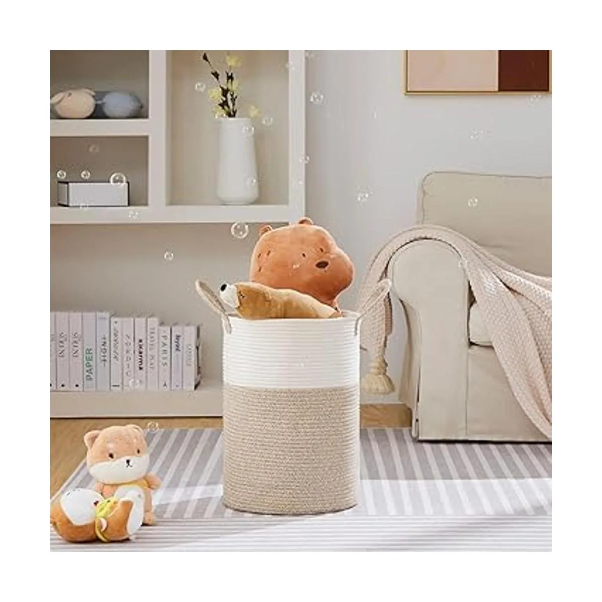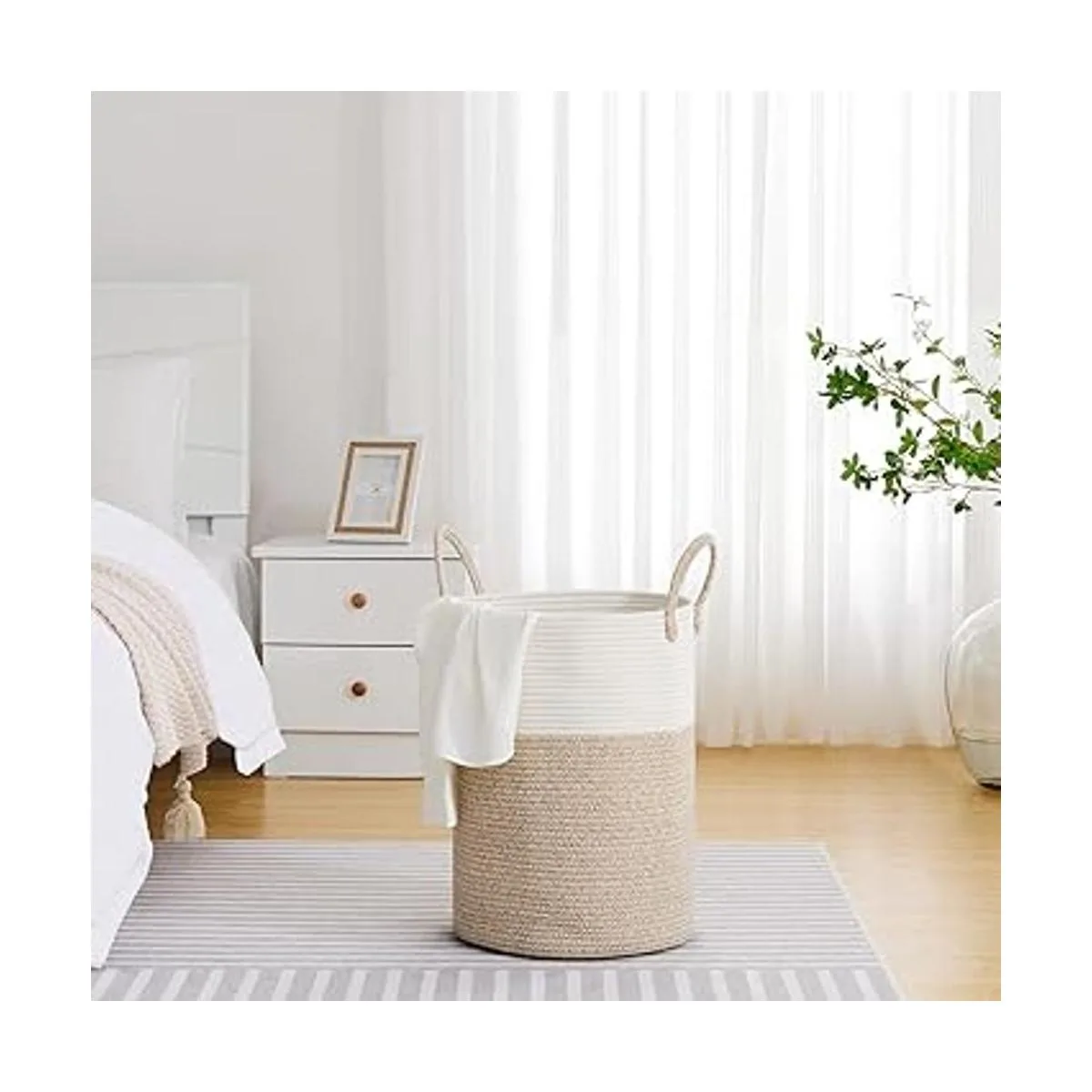 Material y estructura mejorados La cesta de lavandería alta VIPOSCO hecha de cuerda de algodón de alta calidad es duradera e independiente. Puedes poner ropa interior en la cesta o utilizar la cesta para artículos de bebé sin preocuparte por la seguridad.