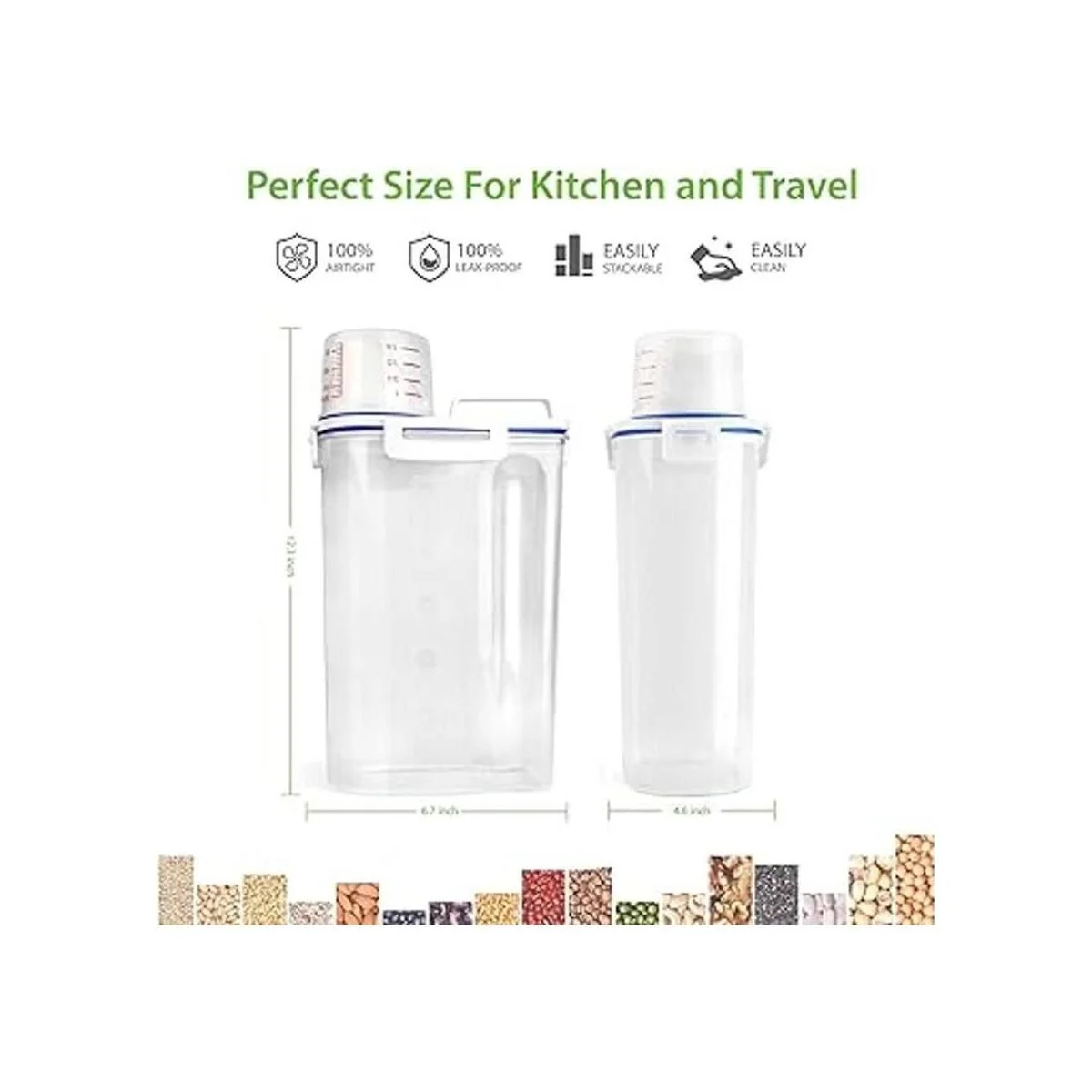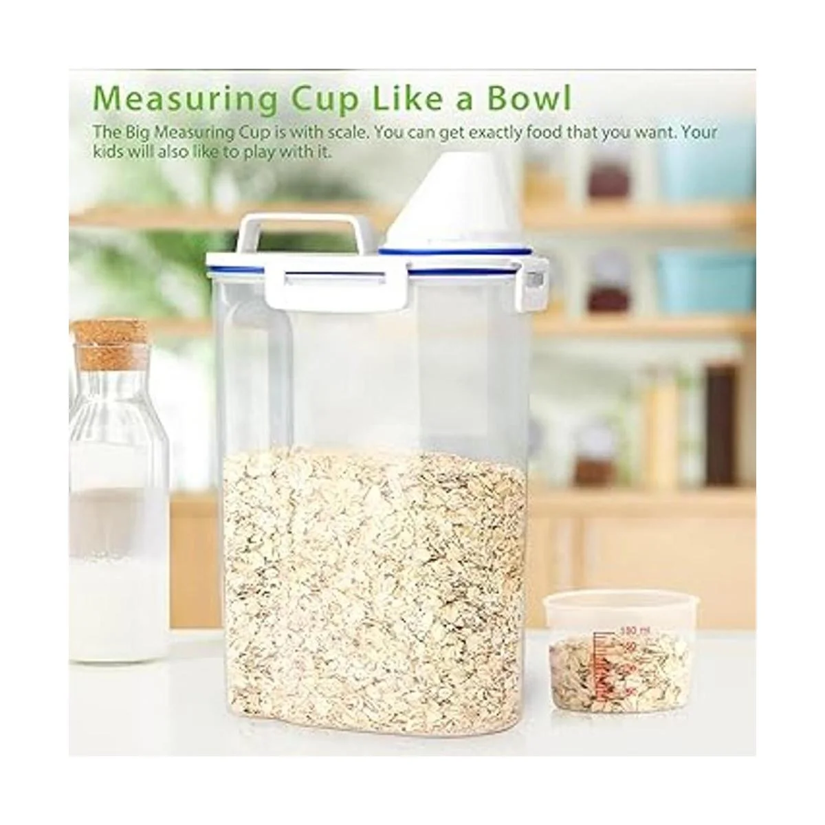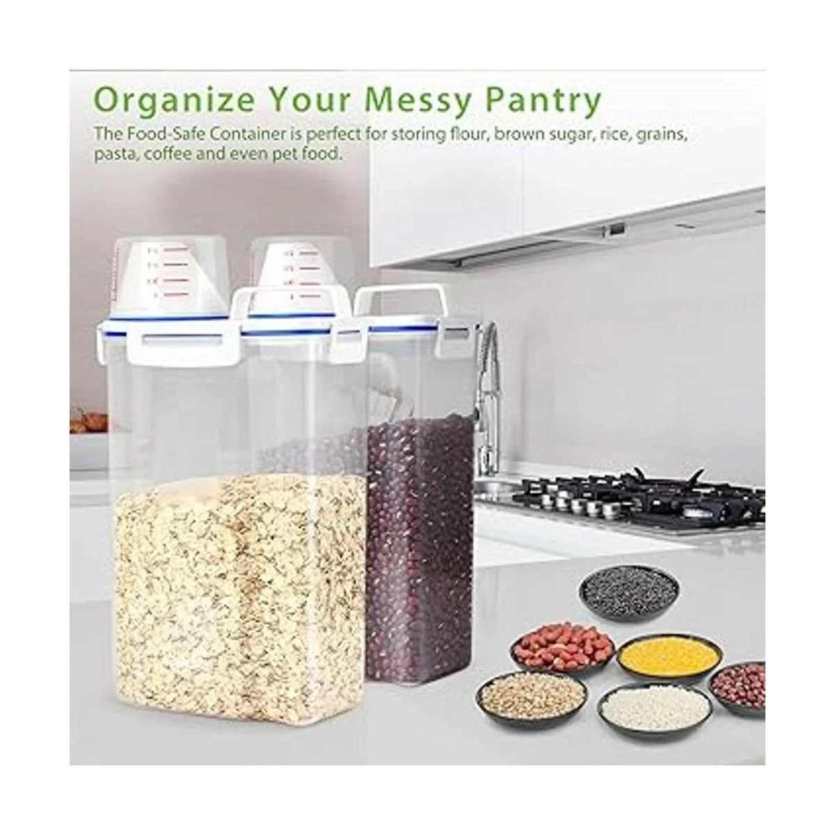 Contenedor inteligente de almacenamiento de cocina: haz que tu despensa esté perfectamente organizada con este recipiente inteligente. Adecuado para frijoles, harina, azúcar, café, arroz, frutos secos, aperitivos, comida para mascotas y más Nota: la capacidad de almacenamiento del recipiente varía según los alimentos. Solo almacena 3 libras de alimentos voluminosos y ligeros