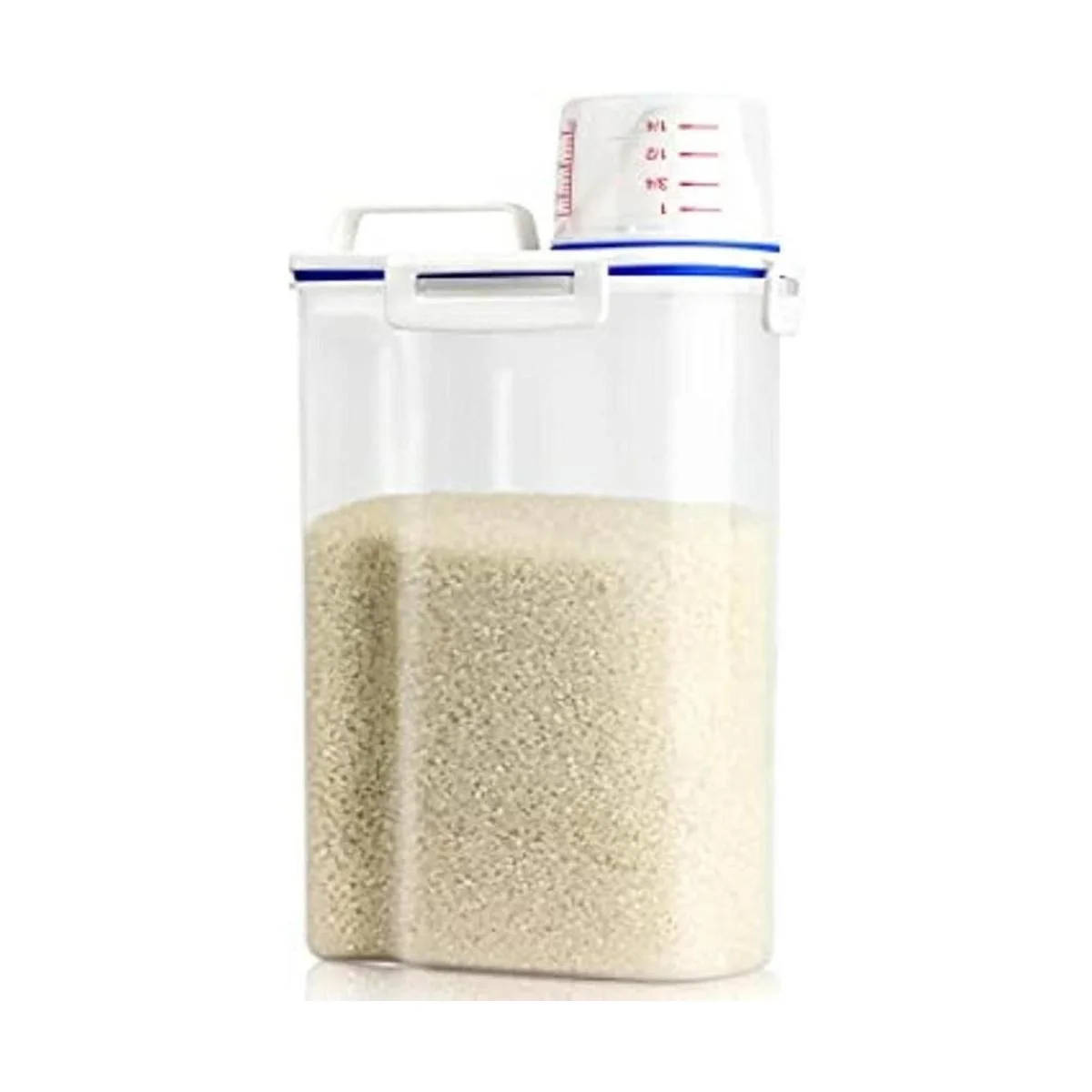 Hermético y ahorra espacio: el recipiente hermético de almacenamiento de arroz siempre protegerá tu comida de la humedad. Cuatro hebillas fuertes sellan el recipiente de avena firmemente, mantienen tu comida fresca y seca. Los recipientes de arroz de despensa con tamaño delgado y altura moderada son perfectos para armarios de cocina de diferentes tamaños