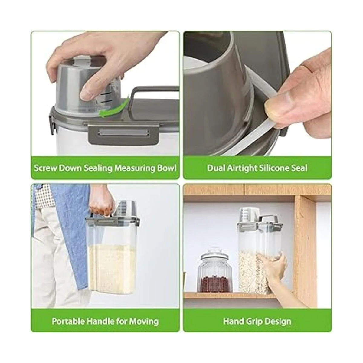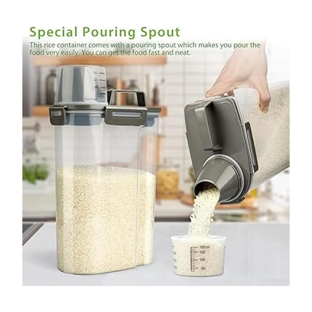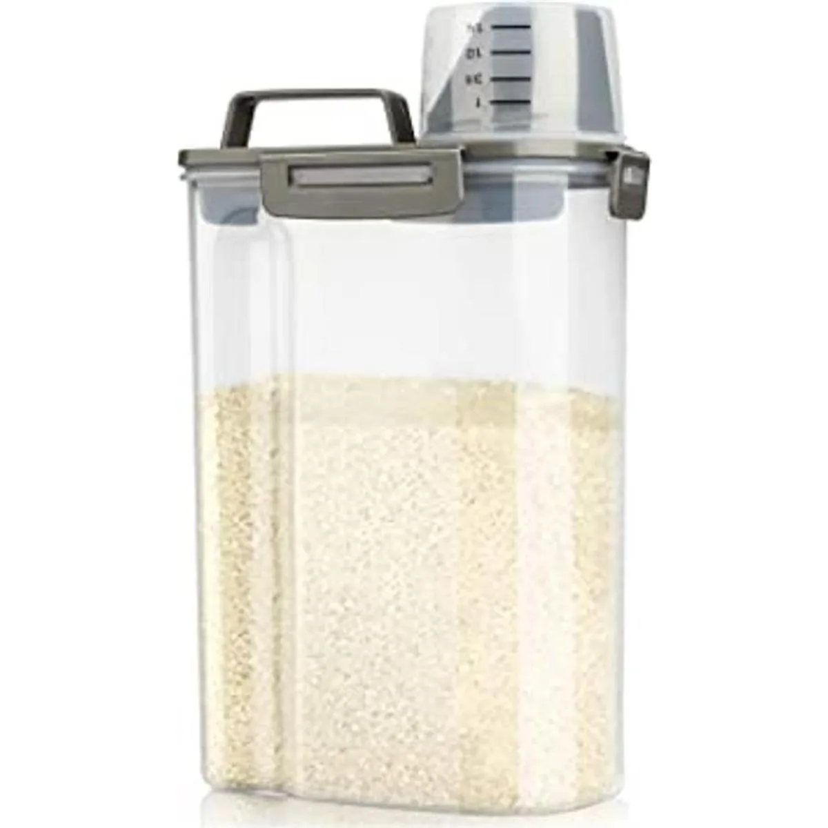 Dispensador de arroz con boquilla de vertido: adopta un mango ergonómico, viene con una taza medidora. El cuerpo del barril tiene una escala estándar para que puedas verter cosas de forma rápida y precisa cada vez. Delgado y compacto y ahorra espacio