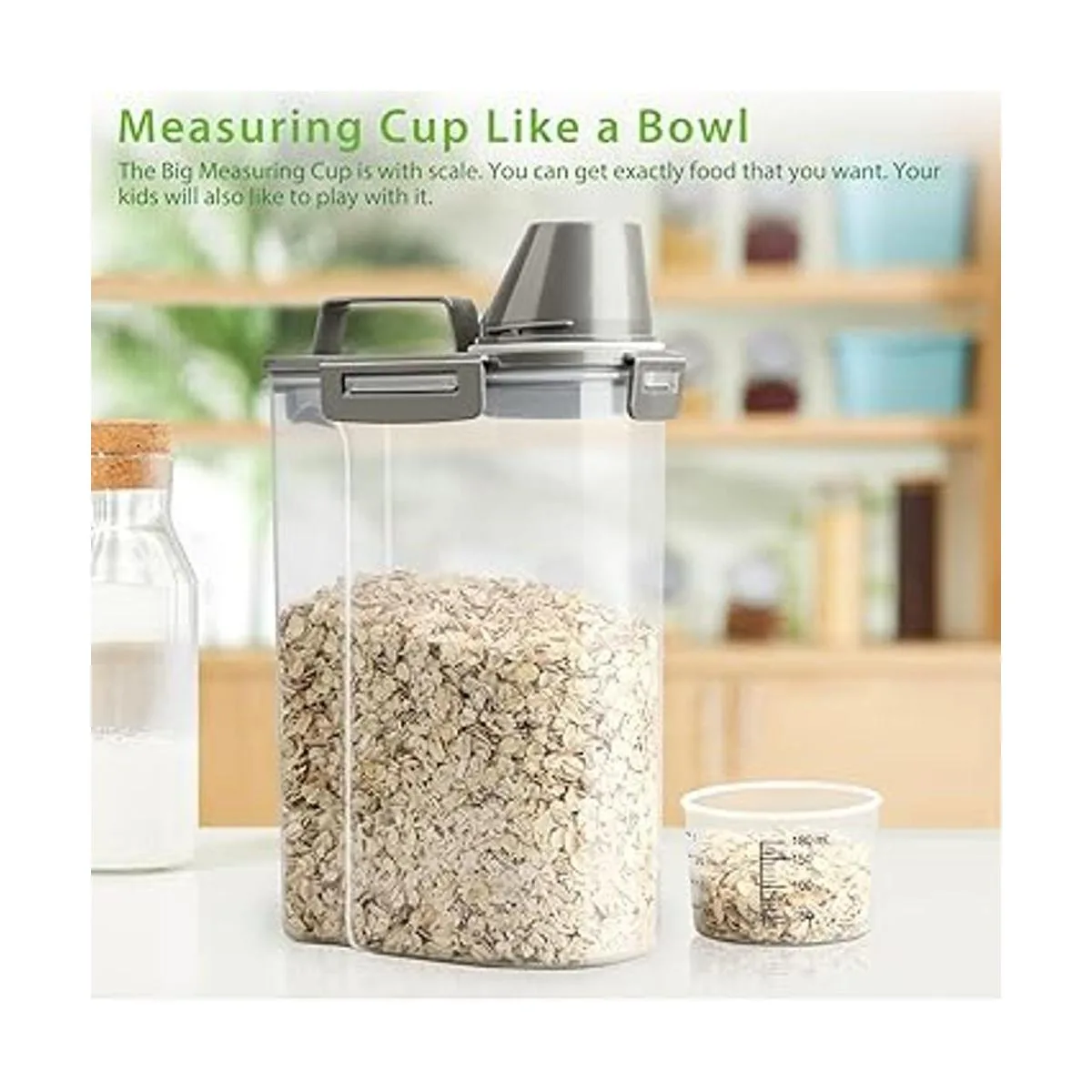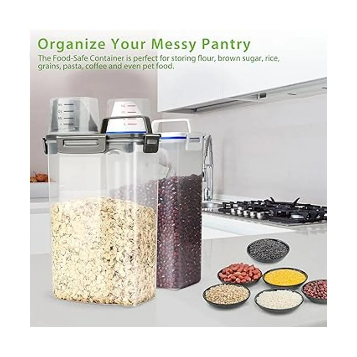 Contenedor inteligente de almacenamiento de cocina: haz que tu despensa esté perfectamente organizada con este recipiente inteligente. Adecuado para frijoles, harina, azúcar, café, arroz, frutos secos, aperitivos, comida para mascotas y más Nota: la capacidad de almacenamiento del recipiente varía según los alimentos. Solo almacena 3 libras de comida o harina para mascotas