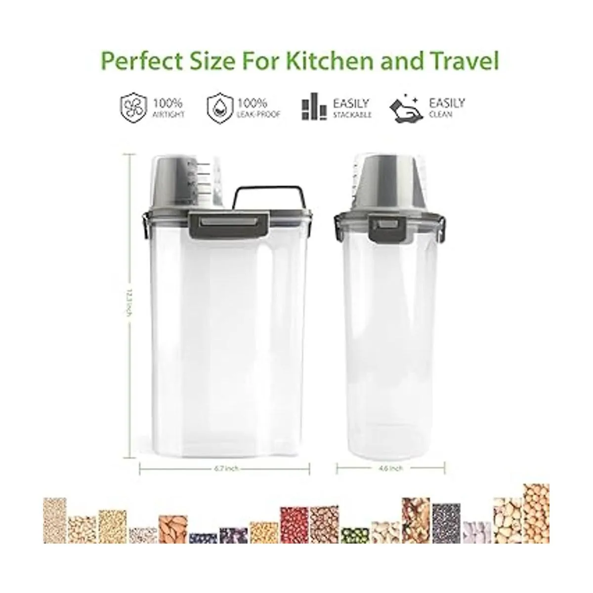 Viretec Contenedor de almacenamiento hermético de arroz, contenedor de harina de alimentos secos de cereales de 3 a 5 libras, dispensador de alimentos para perros y gatos con taza medidora, contenedor de organización de cocina y despensa sin BPA para azúcar, pasta