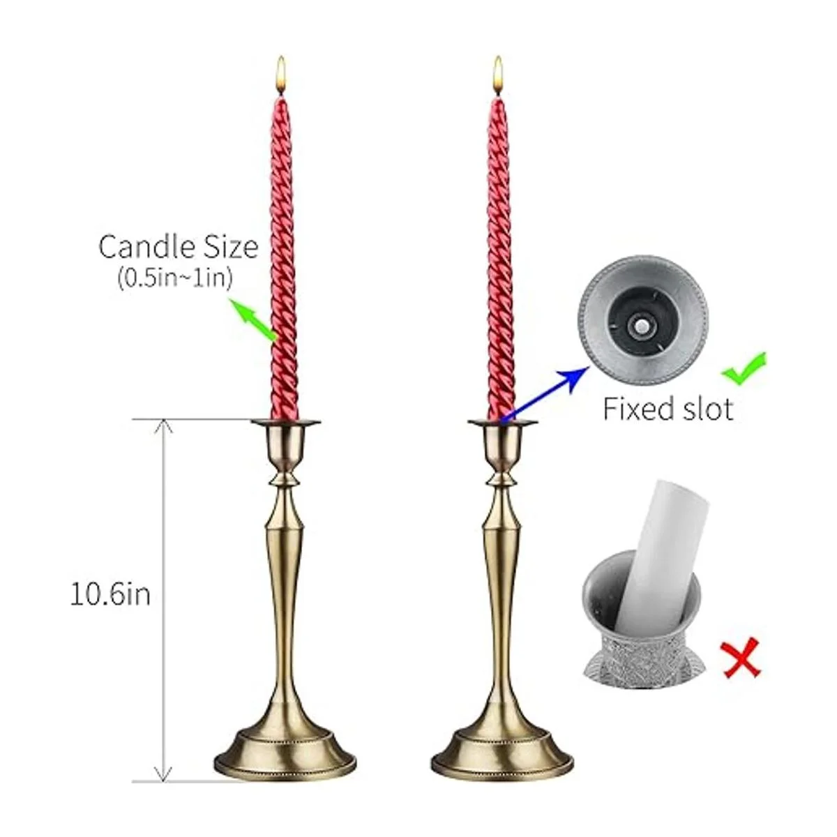 Holds 1 Candles You will be able to place 1 pillar candles measuring up to 0.51inch diameter each for a heavenly and romantic ambiance event. The tall candlestick holder will allow you to provide a perfect amount of light illumination from the 1 candles, with the height of the center candle elevated for a distinguished design.