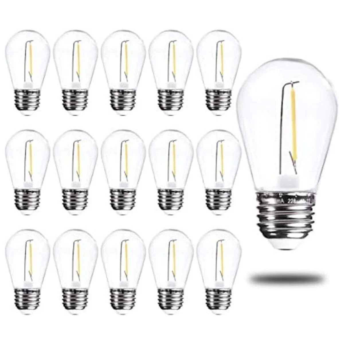 Visther S14 Bombilla LED de 3 V CC para reemplazo de luz de cadena solar, base E26 de 2700 K, 1 W, inastillable de bajo voltaje, 15 unidades