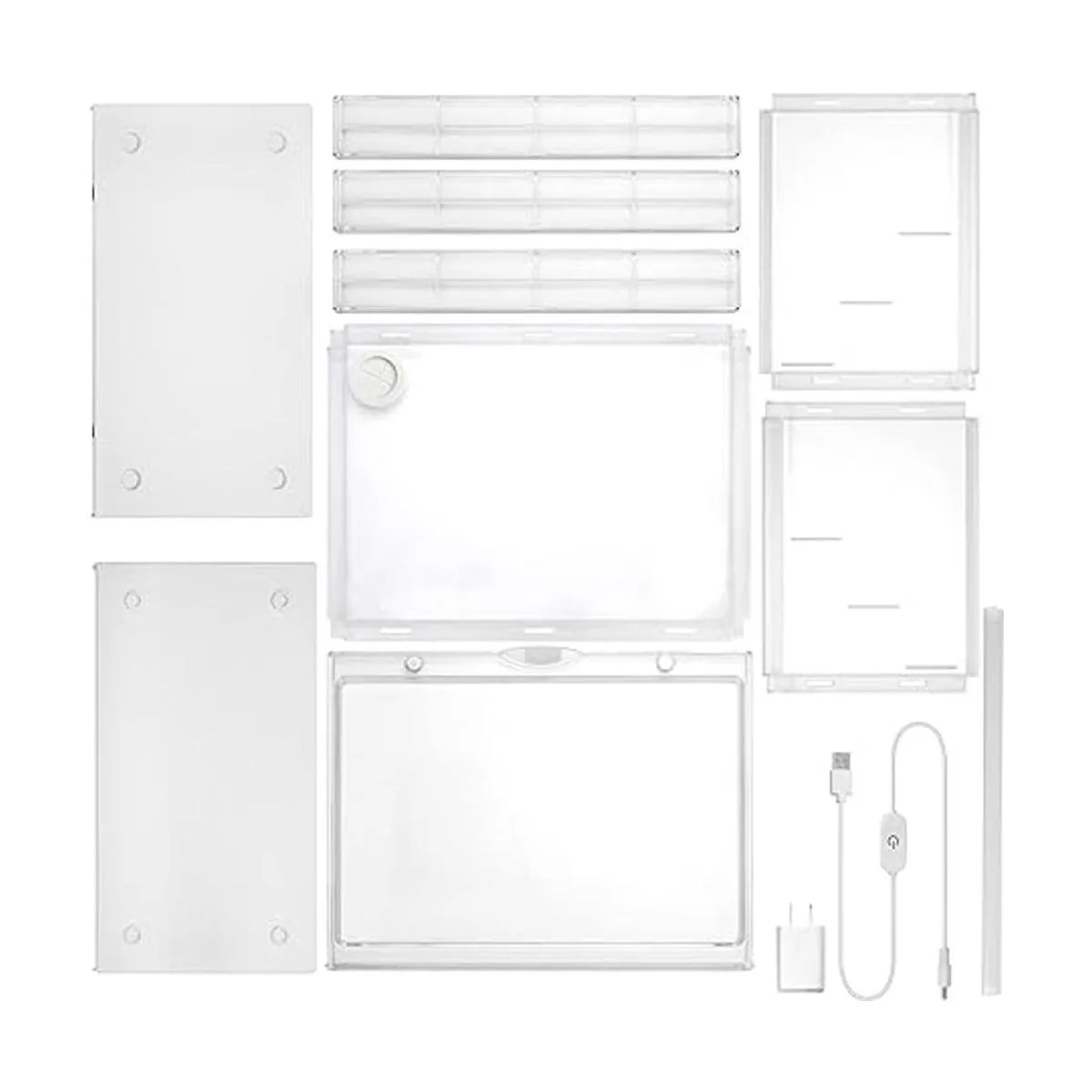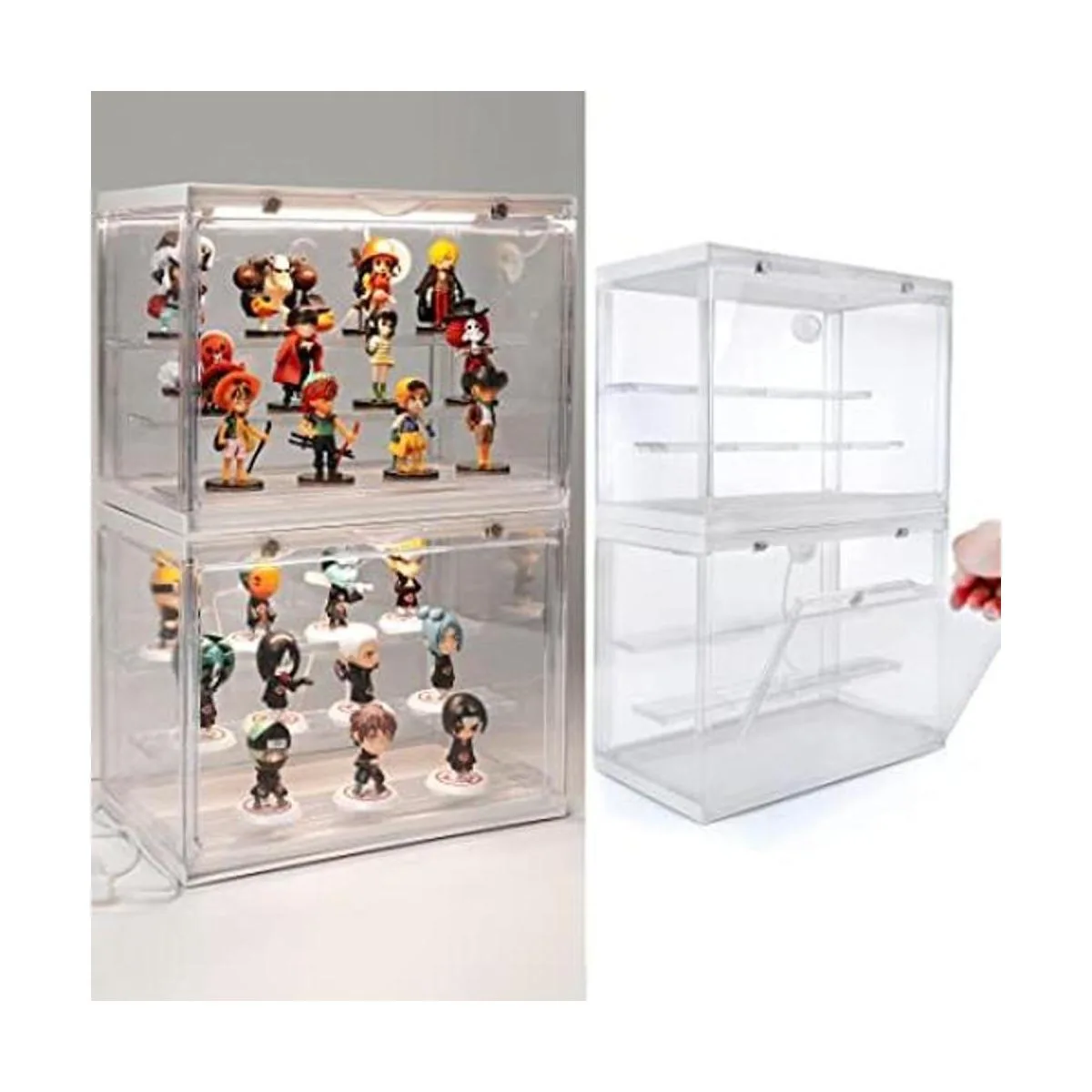 El producto incluye: 1 luz con interruptor, 1 fuente de alimentación USB, 1 caja transparente. Las figuras de acción dentro de las vitrinas son solo para exhibición, no incluidas.