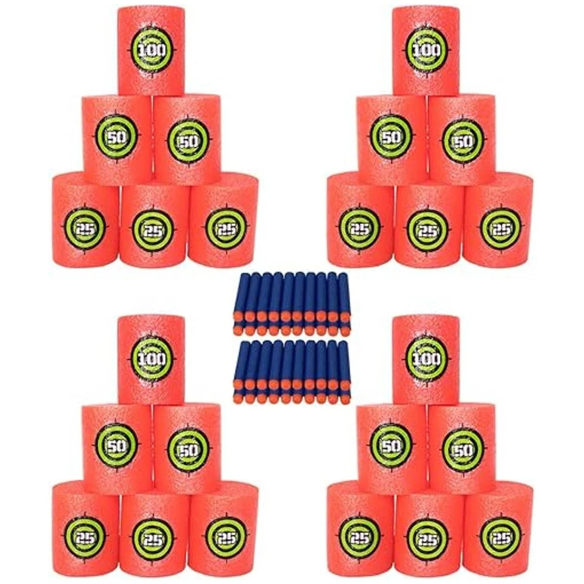 Juego de 64 piezas: incluye 24 objetivos de espuma suave y 40 dardos balas suaves.