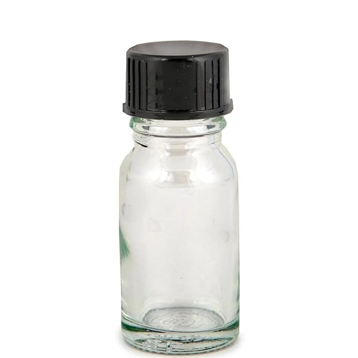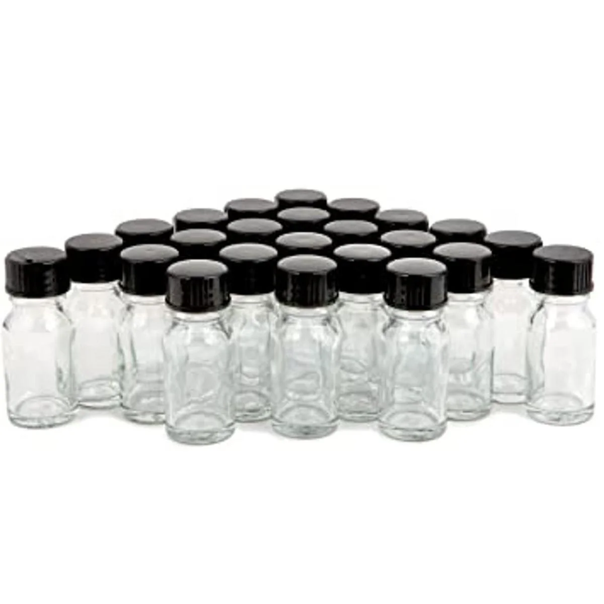 Botellas de cristal transparente de 24 a 0.3 fl oz, con tapa negra.