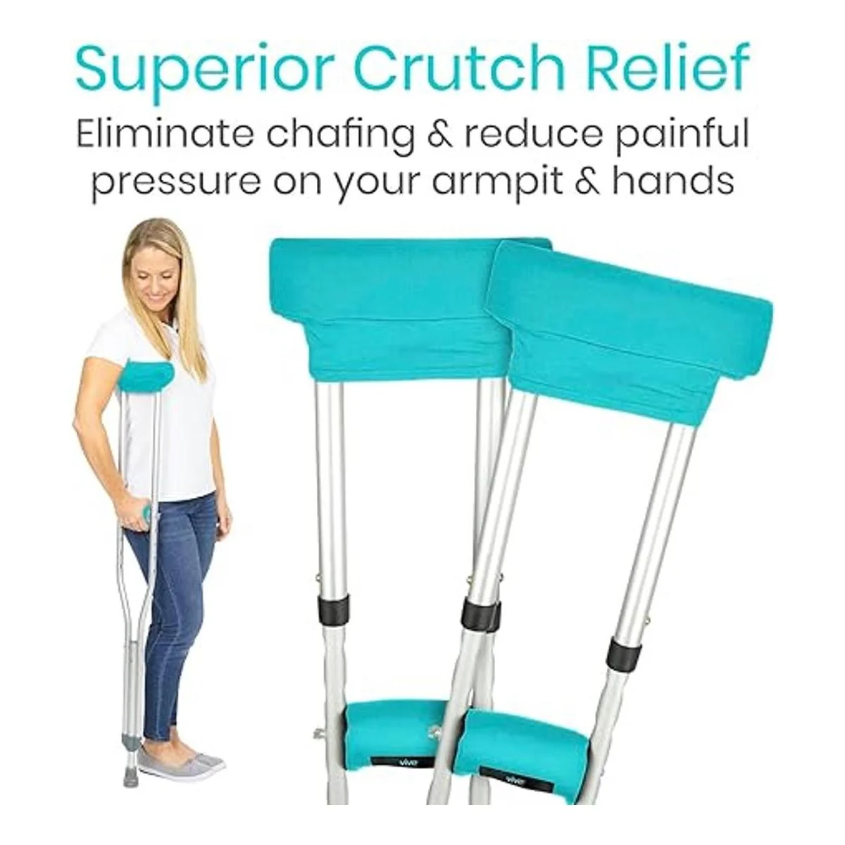 Vive Almohadillas de muleta, acolchado para muletas de brazo para caminar, fundas de almohada universales acolchadas para axilas para empuñaduras de mano, accesorios bariátricos de espuma suave para adultos, niños (1 par verde azulado)