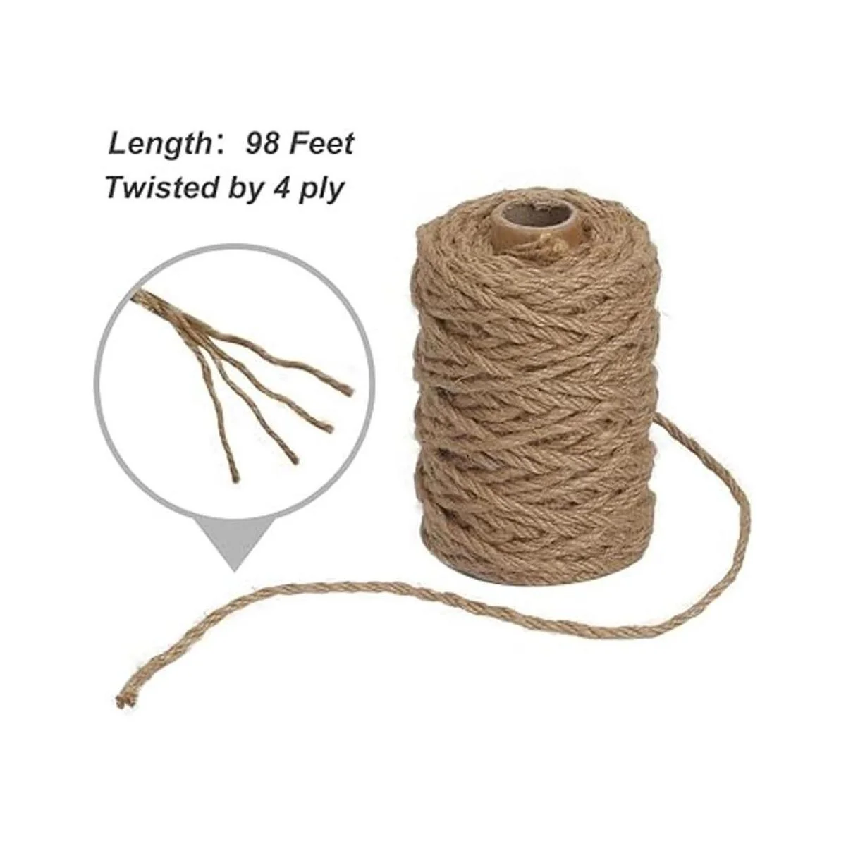 Vivifying Cuerda de yute de 0.157 in, 98 pies, 4 capas de grosor, natural, biodegradable, fuerte cuerda de yute para jardín, regalos, manualidades marrón