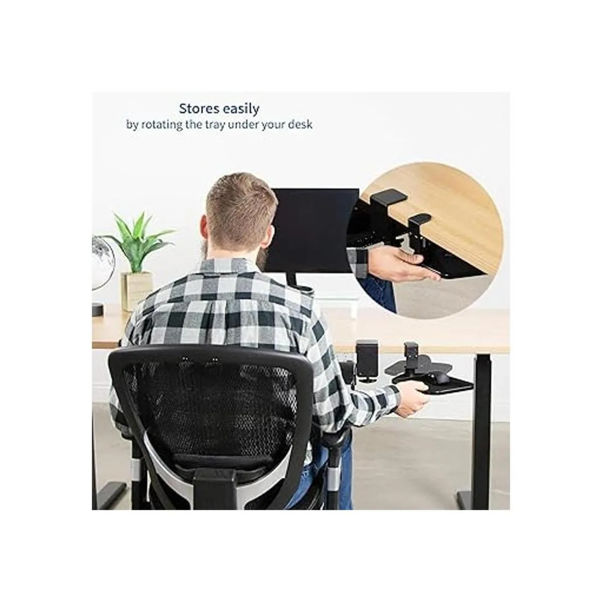 VIVO Abrazadera de escritorio ajustable para mouse y soporte para dispositivos, bandeja de plataforma giratoria extendida, se adapta a escritorios de hasta 2 pulgadas, negro, MOUNTMS01A