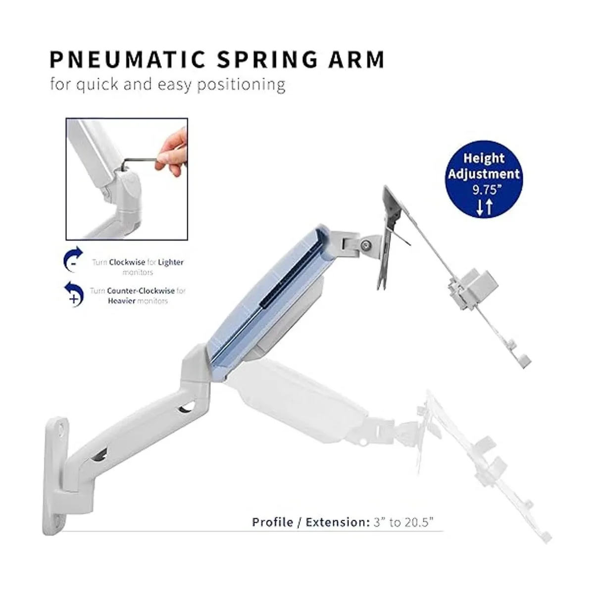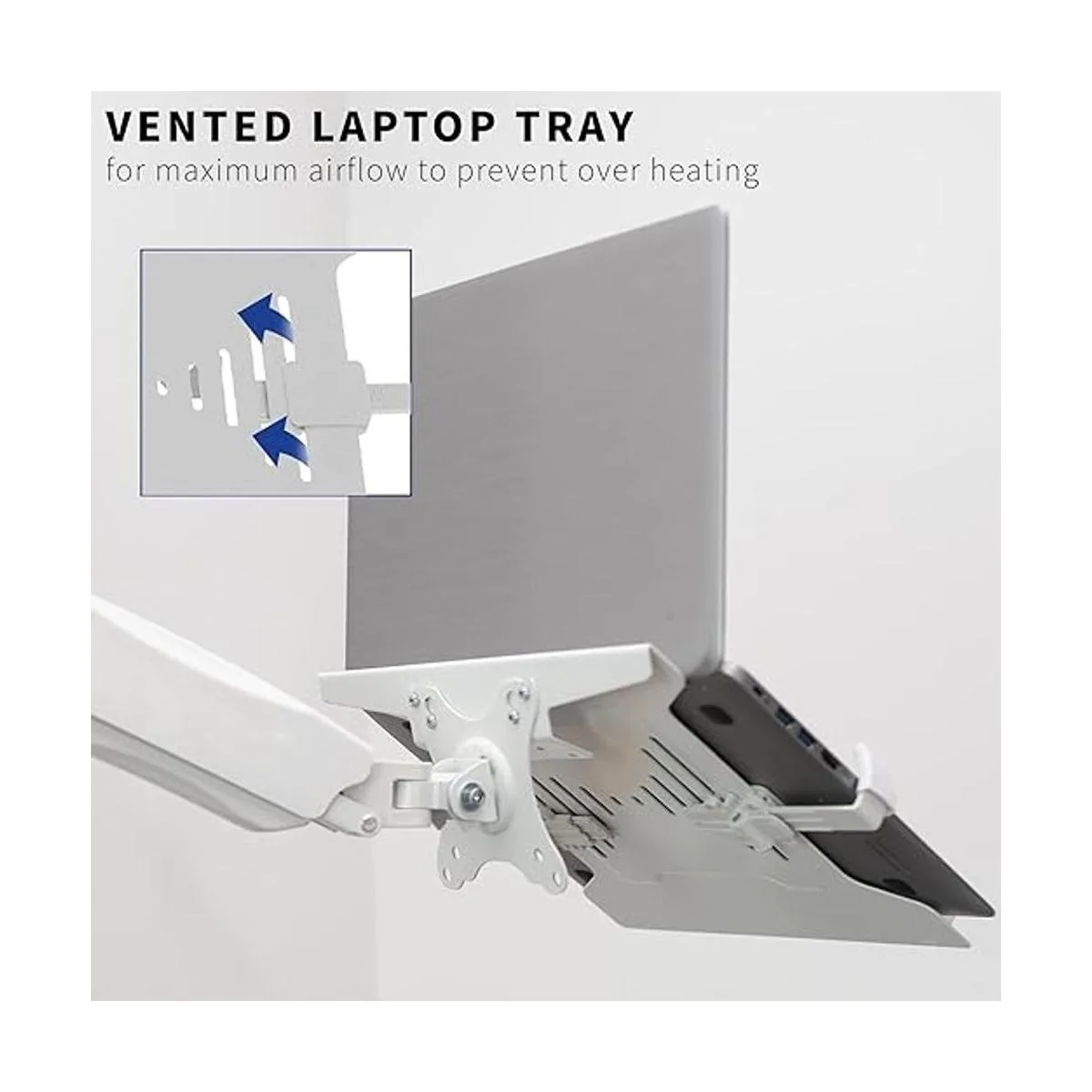 VIVO Soporte de pared para portátil de brazo extendido neumático de altura ajustable, bandeja articulada de movimiento completo, se adapta a pantalla de 10 a 15.6 pulgadas, blanco, MOUNTV001GLW