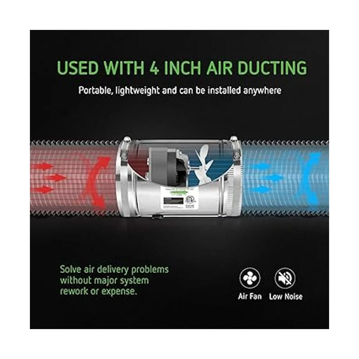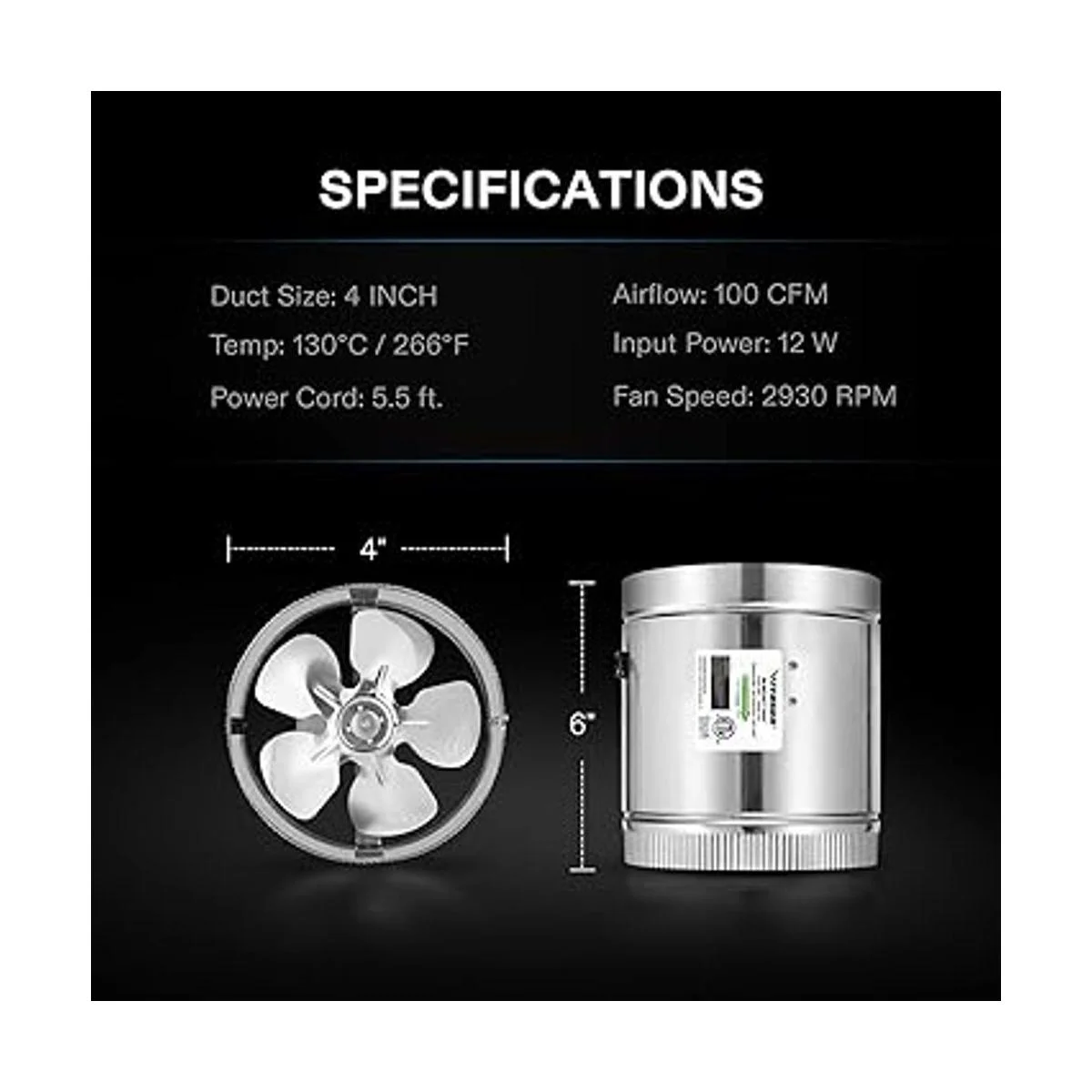 VIVOSUN 4 Inch Inline Duct Fan 100 CFM, HVAC Exhaust Ventilation Fan with Low Noise for Basements, Bathrooms, Kitchens and Attics, Silver