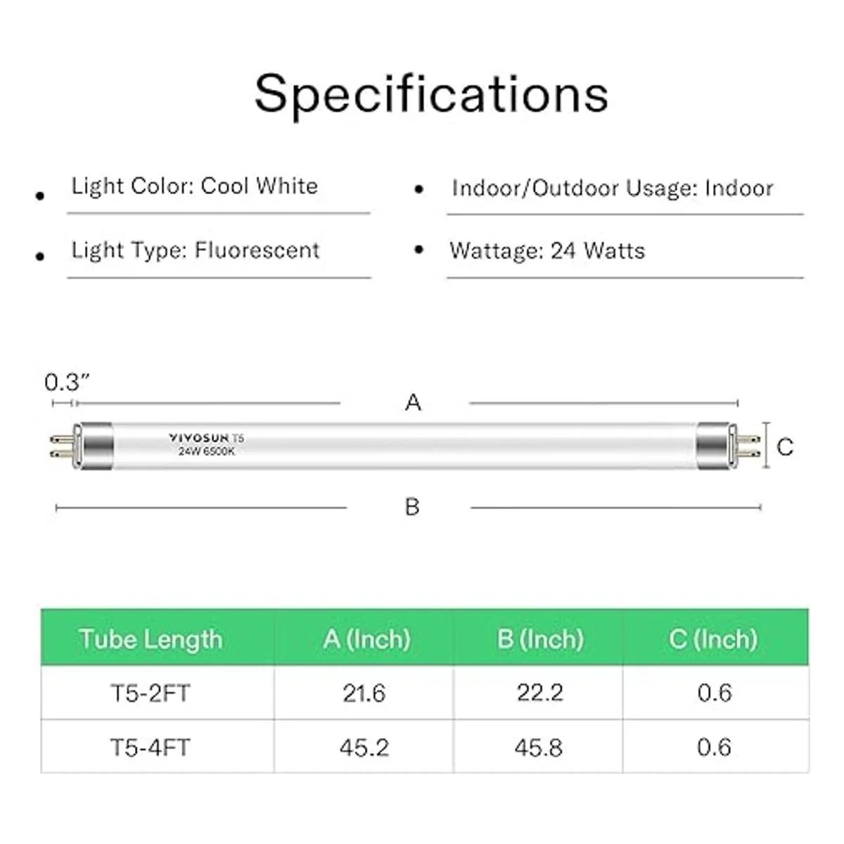 VIVOSUN 5 Paquetes de tubos fluorescentes T5 para plantas.