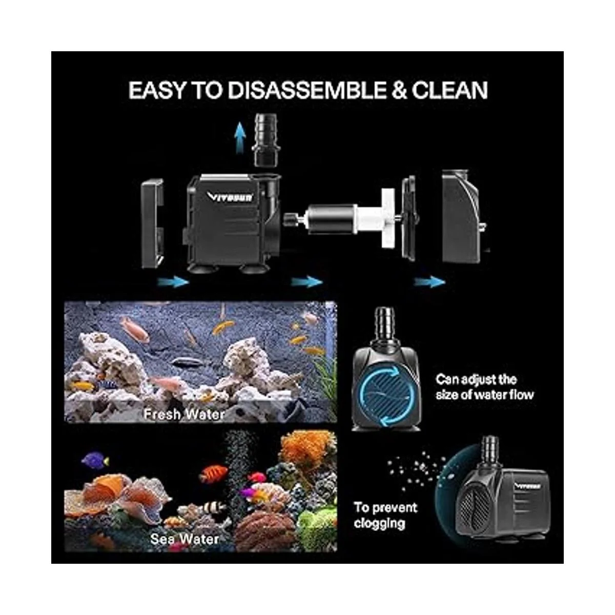 Desmontable y limpiable: esta bomba de agua compacta es fácil de ocultar o disfrazar, y no necesita herramientas especializadas para desmontarla o limpiarla