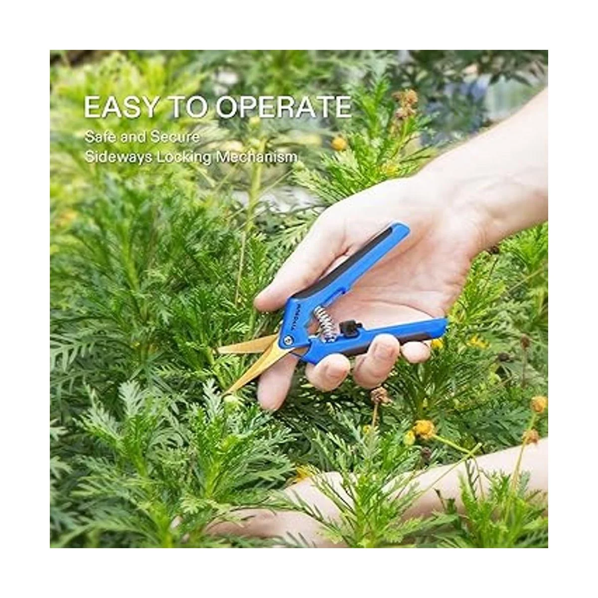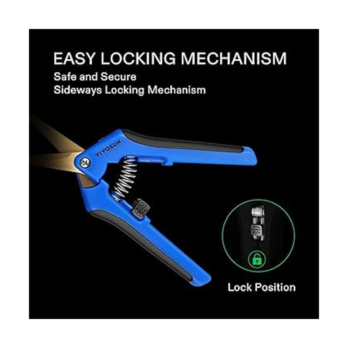 Segura, fácil de bloquear: estas tijeras de micropunta cuentan con un mecanismo de bloqueo lateral seguro que mantiene tus cuchillas protegidas y cerradas cuando no están en uso; el diseño de estas tijeras de poda es perfecto para usar tanto si eres diestro como zurdo con facilidad