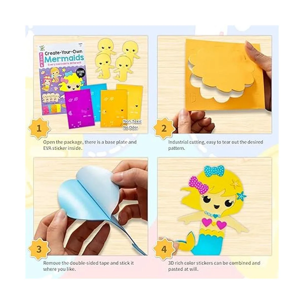 VKPI Kit de regalo de 4 piezas de espuma EVA para manualidades, creativa para hacer tus propias sirenas, juego de rompecabezas de calcomanías 3D de dibujos animados para niños, manualidades a partir de 4 años, juguete de aprendizaje preescolar para suministros de recuerdo de fiesta de cumpleaños