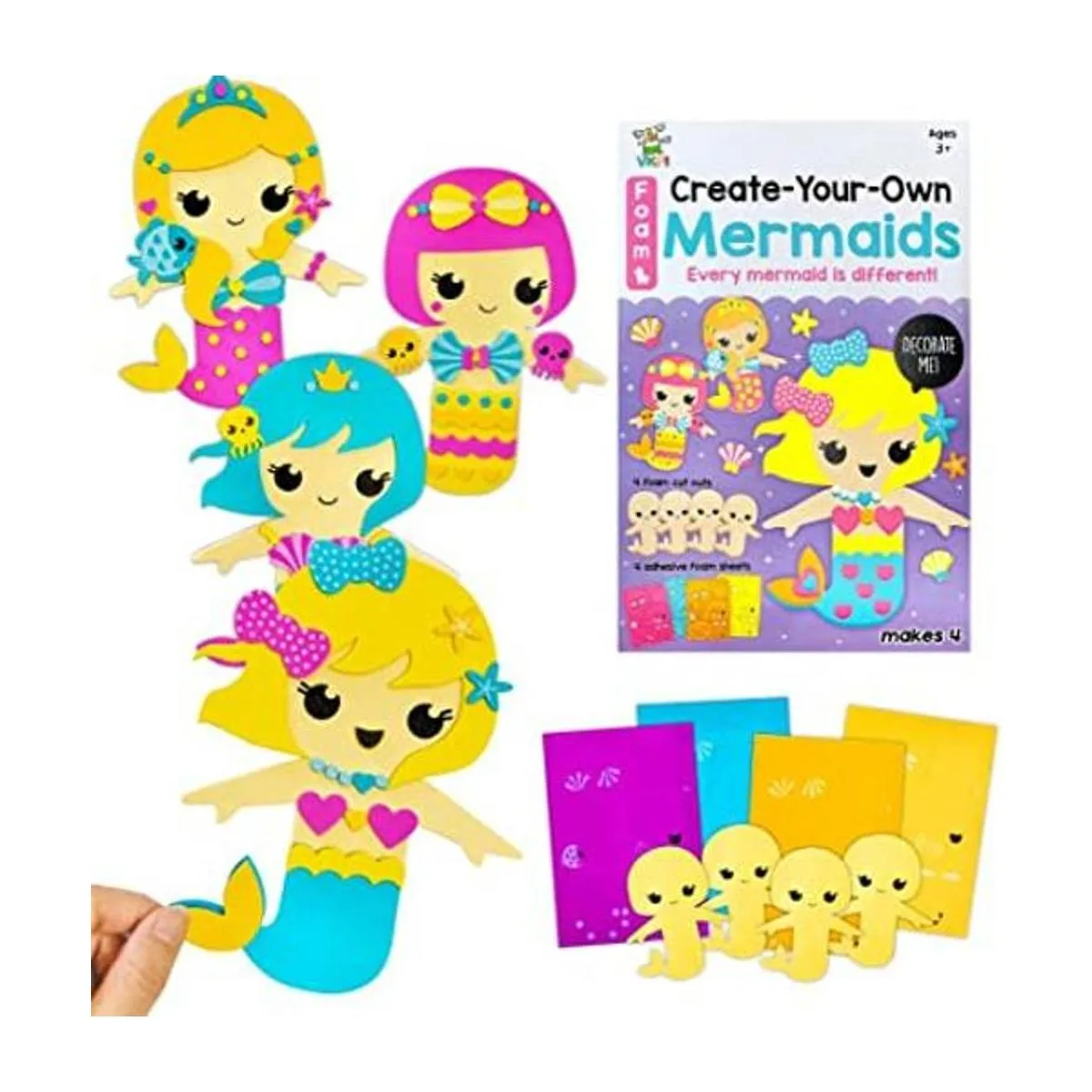 Kit creativo de manualidades de espuma: el paquete viene con 4 cartones adhesivos con patrón de corte y 4 sirenas sin acabar. Toma tu imaginación y haz tus propias sirenas 3D únicas.